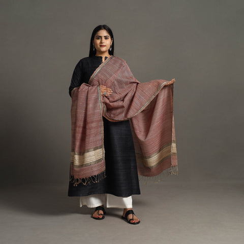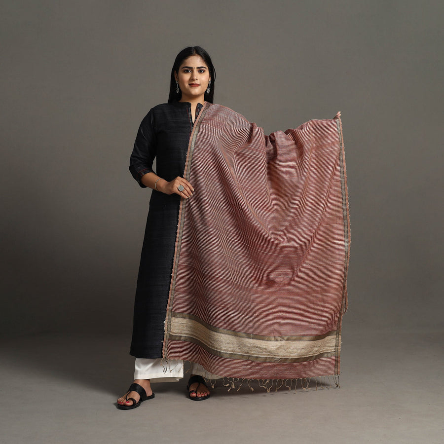 | Material | This brown Maheshwari silk-cotton handloom dupatta with tassels is a masterpiece of traditional weaving techniques passed down through generations of skilled artisans in Maheshwar. Its lightweight, sheer texture exudes unparalleled elegance, adding grace to any attire. With its exquisite craftsmanship and delicate tassels, this dupatta is a must-have for anyone who appreciates the art of handloom weaving. |