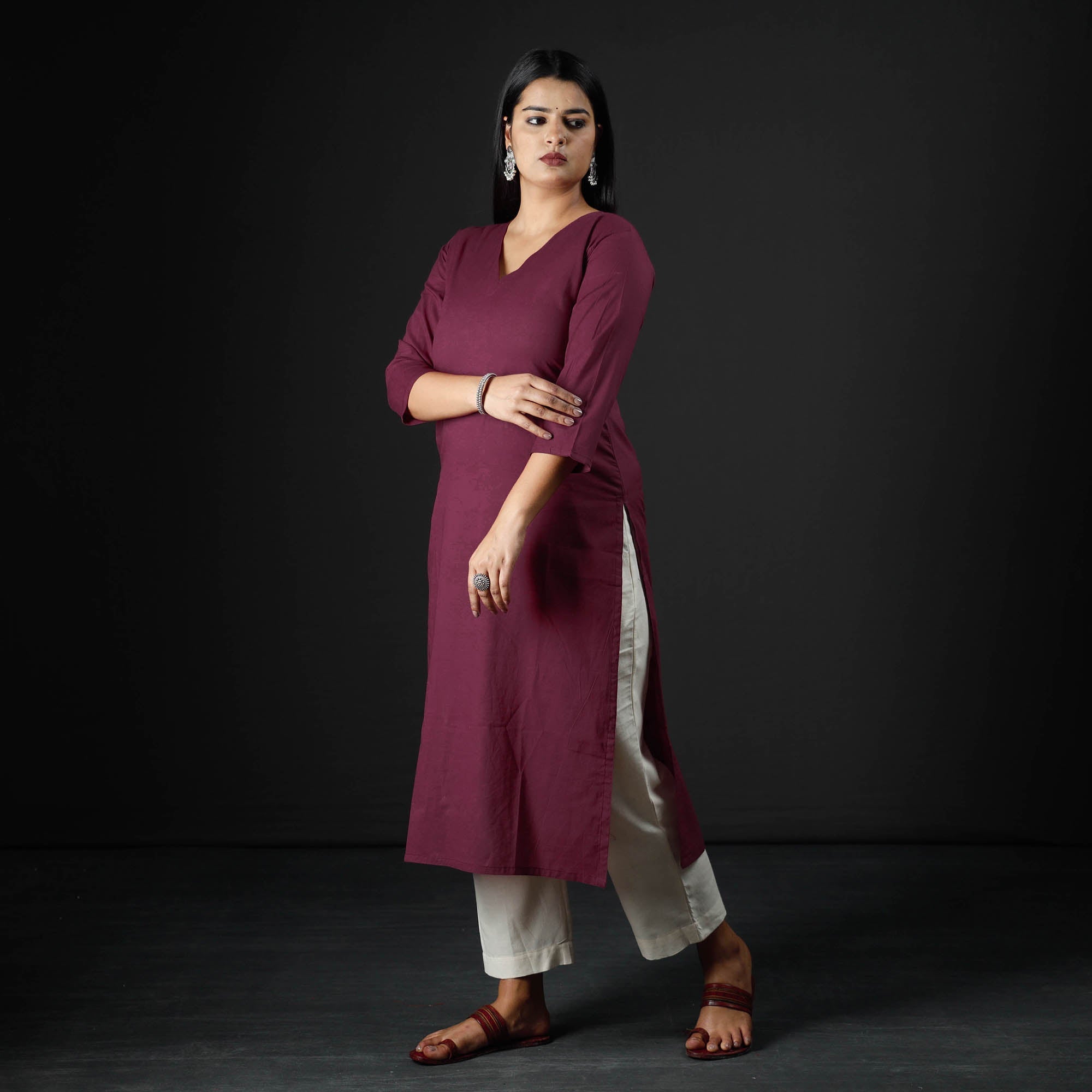 Look and feel beautiful in this uniquely designed plain dyed cotton long Kurta with one side pocket. This cotton Kurta makes you comfortable with ease all day long.