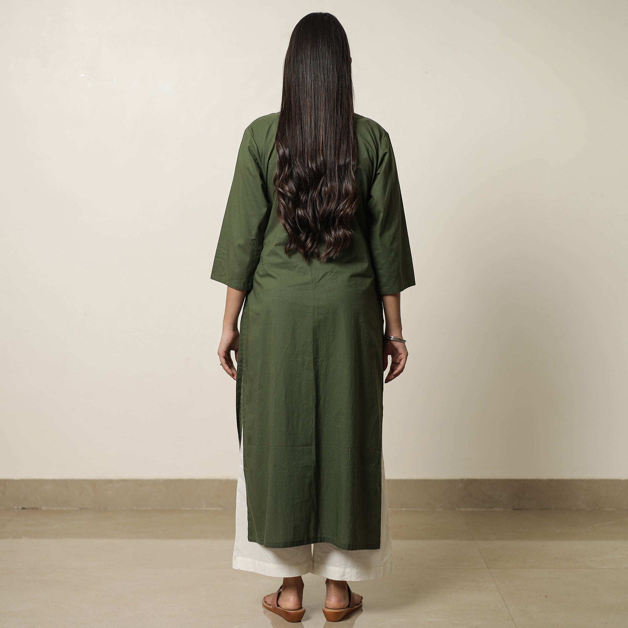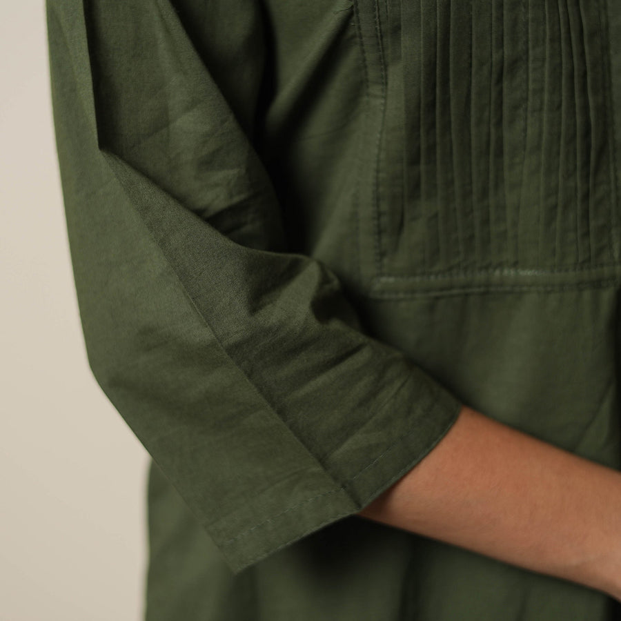 Look and feel beautiful in this uniquely designed plain dyed cotton pintuck long kurta with one side pocket. This cotton kurta makes you comfortable with ease all day long.