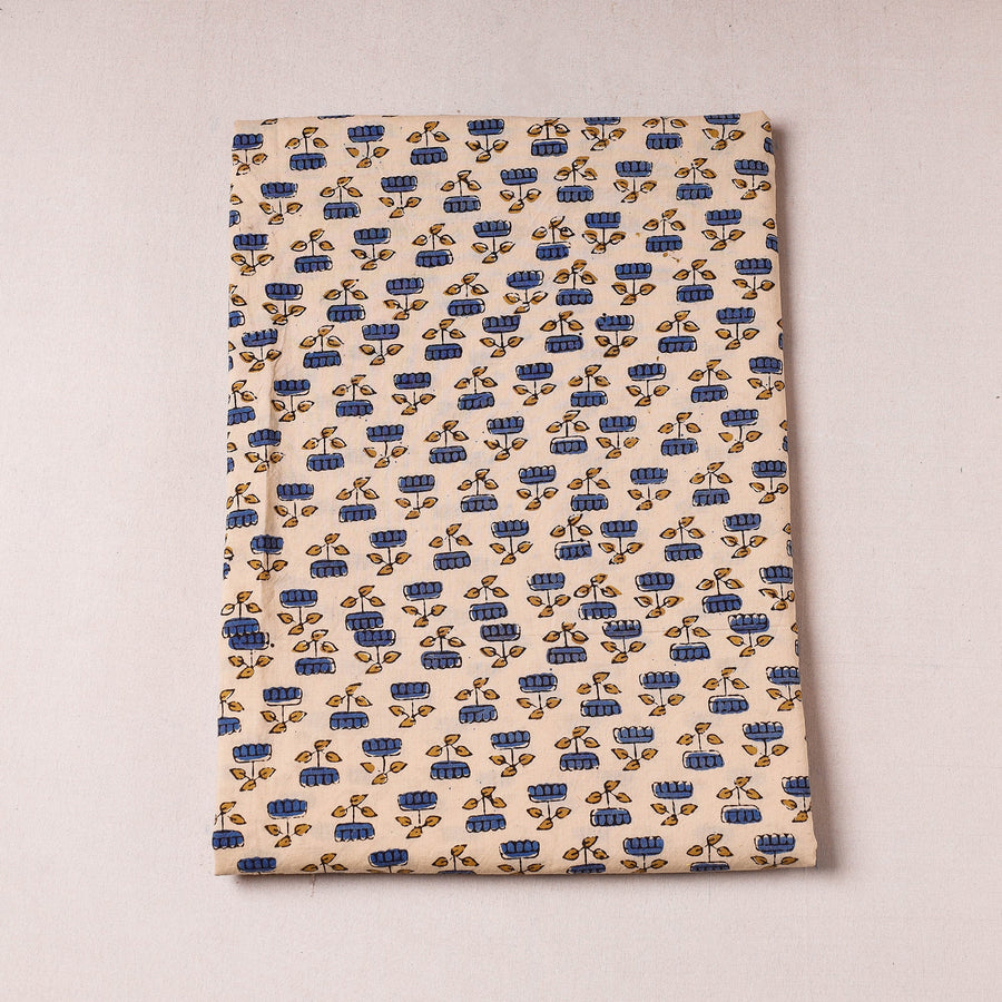 Fine quality beige ajrakh hand block printing cotton precut fabric made using natural dyes through traditional ajrakh technique of hand-block printing practised by the artisans in Kutch region of Gujarat.