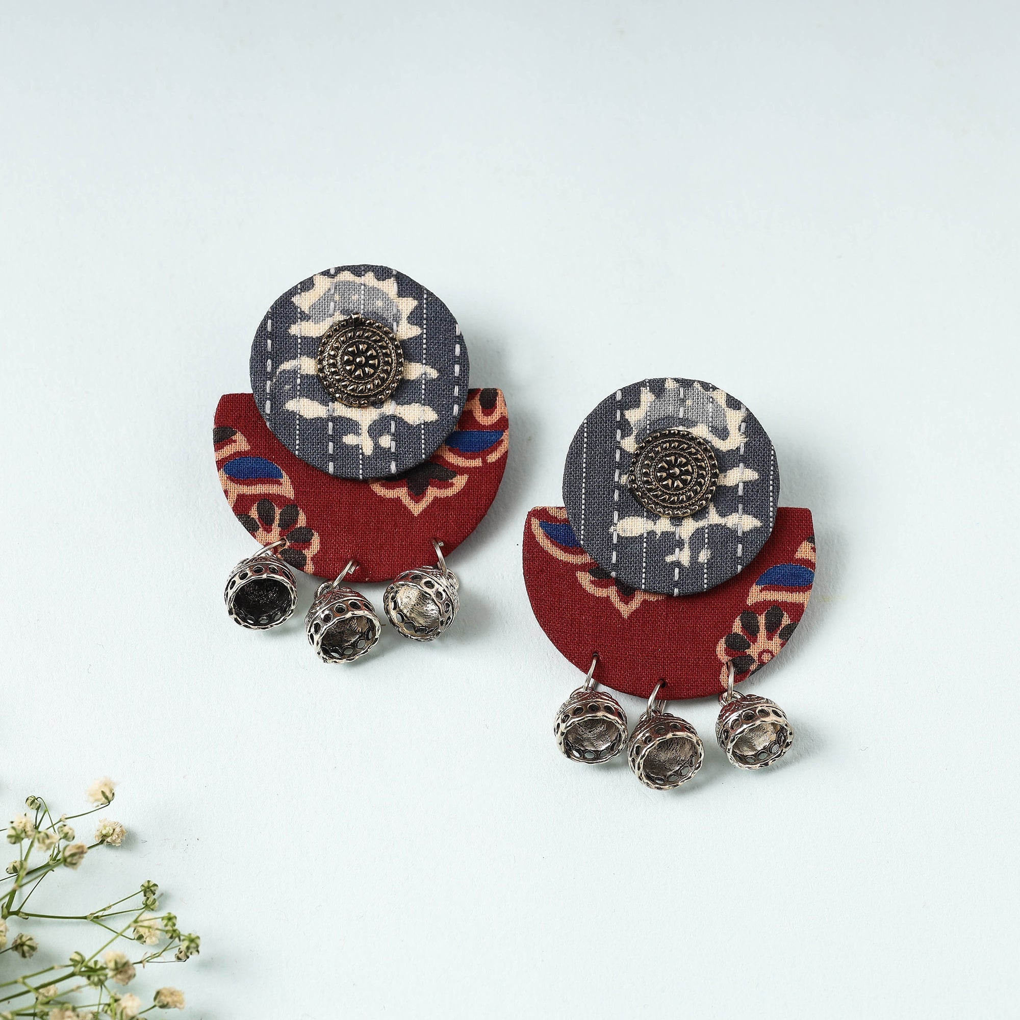 Handcrafted red moon design fabart earrings made by the master artist Asalkaar of West Bengal. These exclusive earrings will complement the majority of your dresses and give you a fashionable look.