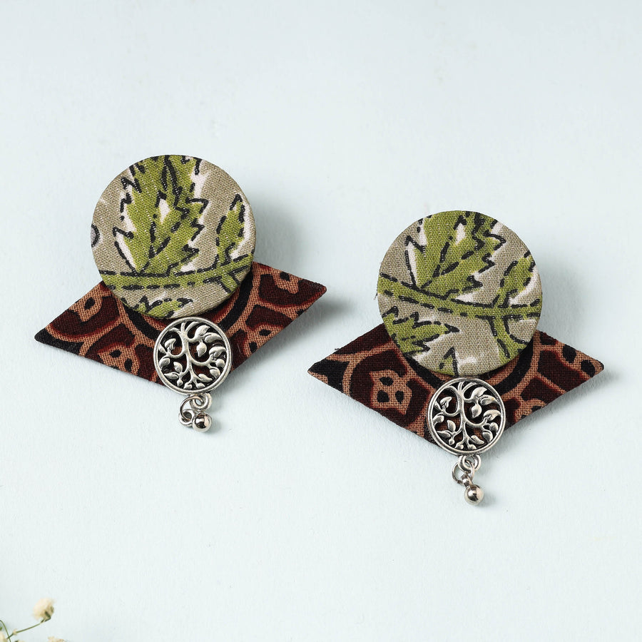 Green handcrafted fabart earrings made by the master artist Asalkaar of West Bengal. These exclusive earrings will complement the majority of your dresses and give you a fashionable look.