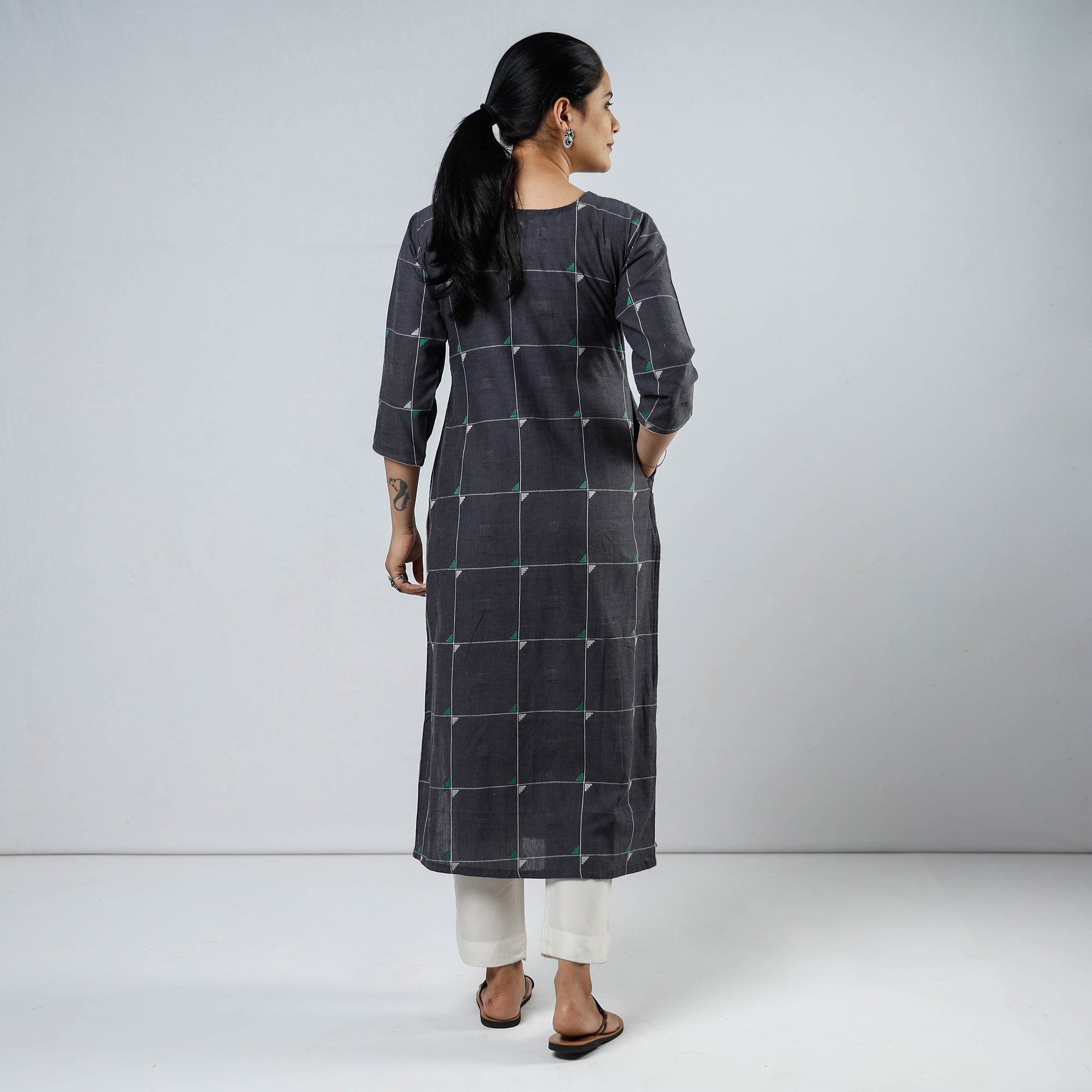 Look and feel beautiful in this uniquely designed jacquard cotton long kurta with one side pocket. This cotton kurta makes you comfortable with easy all day long.