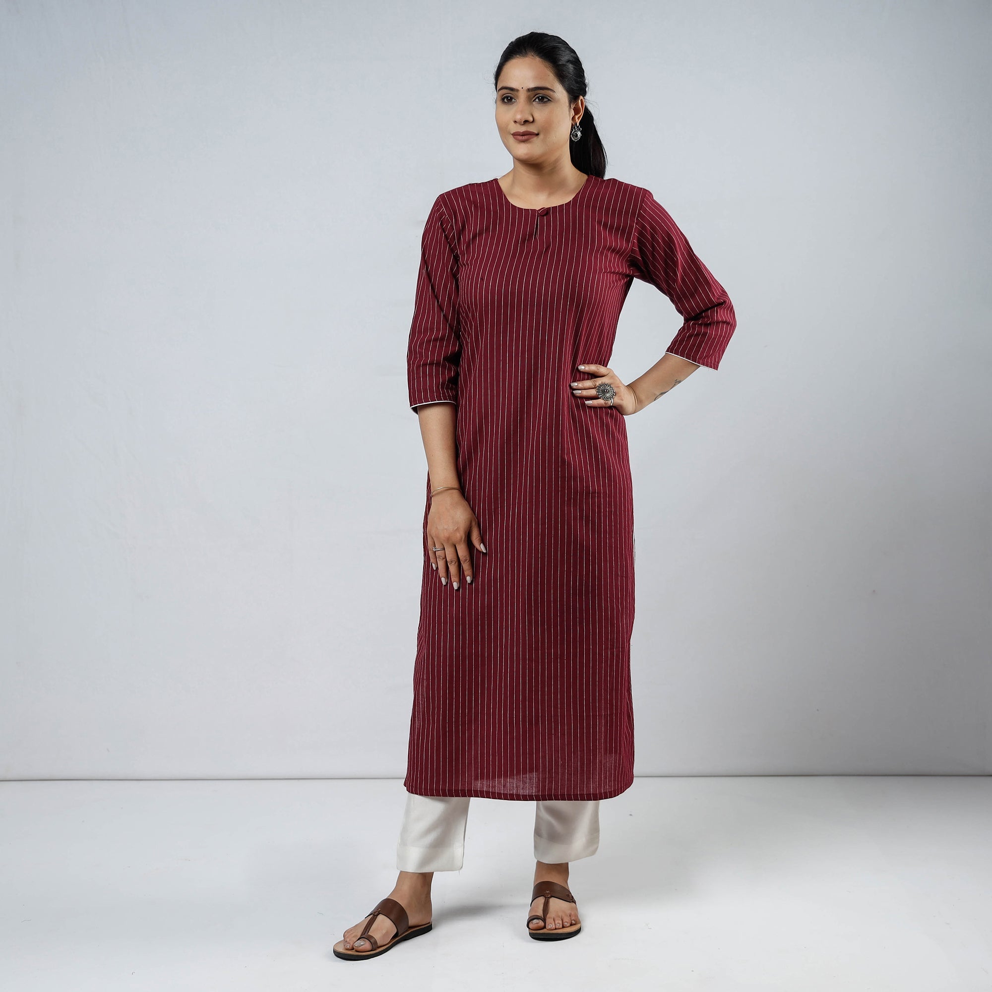 Look and feel beautiful in this uniquely designed jacquard cotton straight kurta with one side pocket. This cotton kurta makes you comfortable with easy all day long.