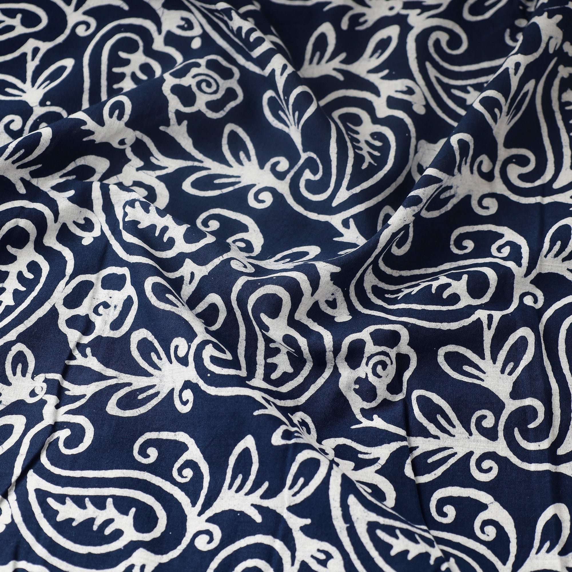 Blue - Kutch Hand Block Batik Print Cotton Fabric 36