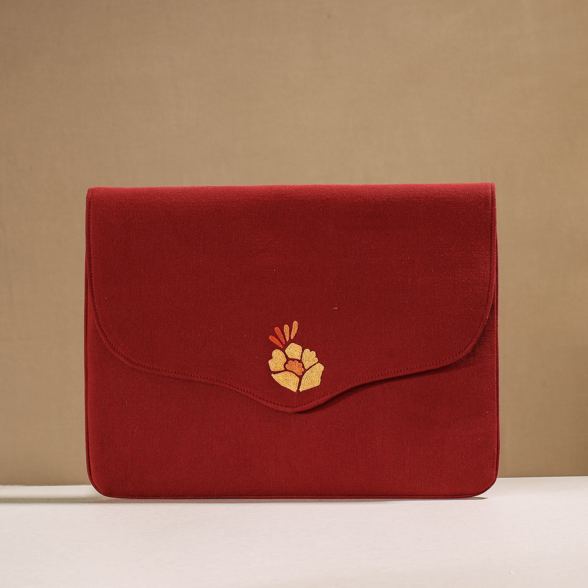 This handcrafted Aari embroidery iPad sleeve is made of cotton duck fabric that effectively protects your device during long trips and on the daily commute to the office. This iPad sleeve is completely made using traditional Kashmiri aari hand embroidery by artisans. This embroidery, with its rich designs, has made a notable contribution to the Indian embroidery traditions. The embroidery, which is done by women's, is generally done on cotton fabrics in the form of a net using cotton or silk thread.
