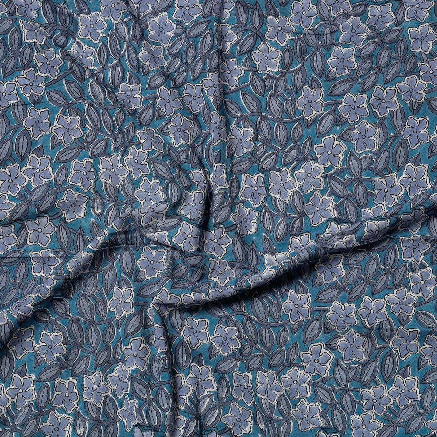 Blue - Cotton Hand Block Sanganeri Print Fabric 07