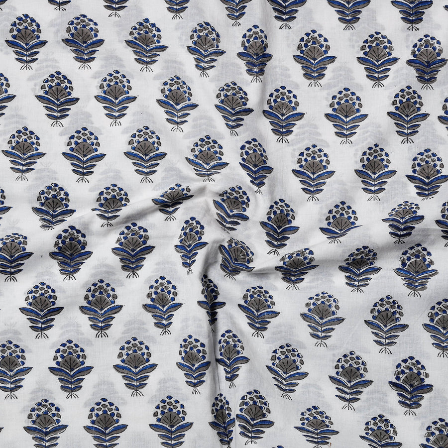 Blue - Cotton Hand Block Sanganeri Print Fabric 07