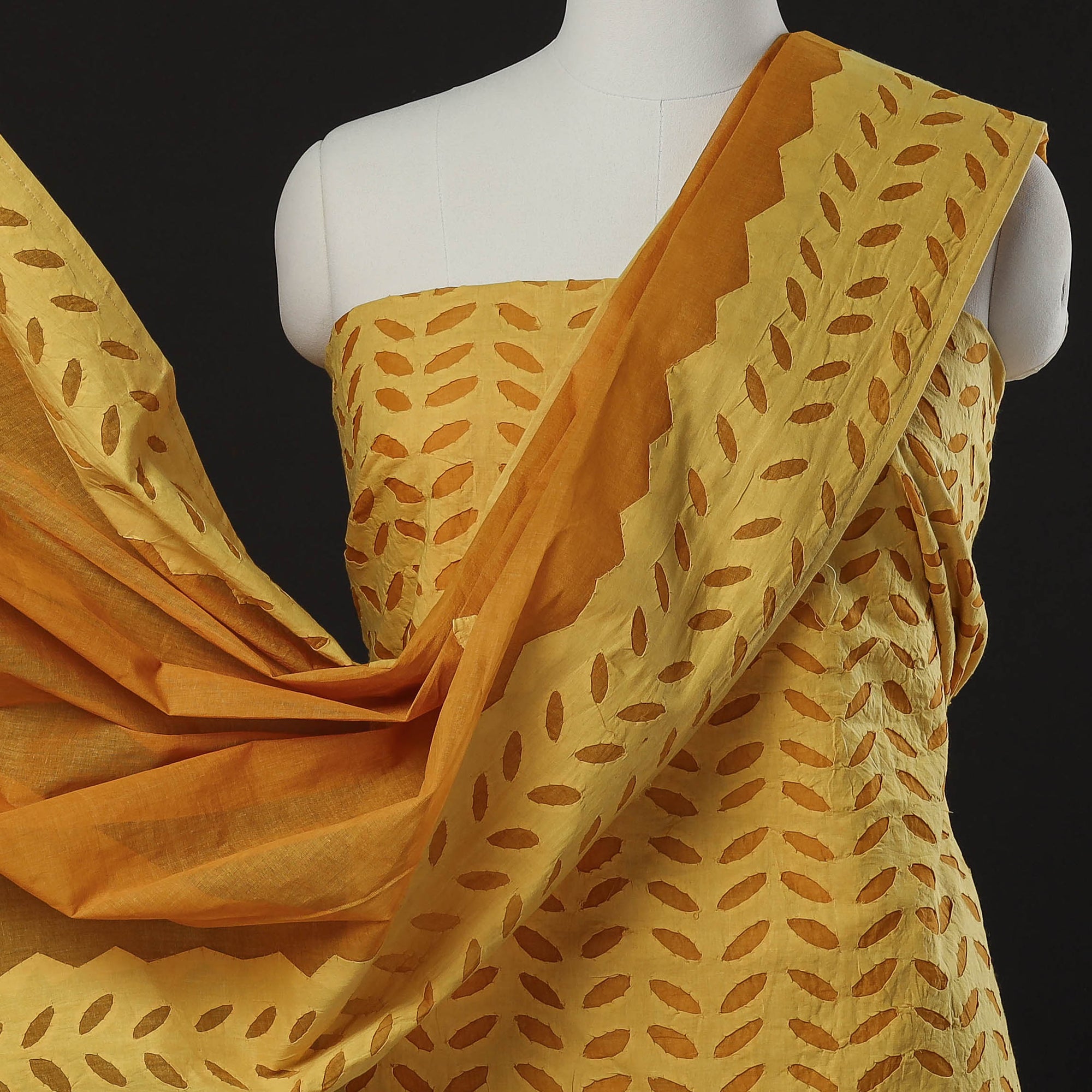 Fine quality hand stitched applique cut work cotton 3-piece dress material from Barmer, Rajasthan. It's unique style applique work does magic in light and shade with beautiful stories and patterns. (the set comes with a plain colour matching bottom/salwar piece)