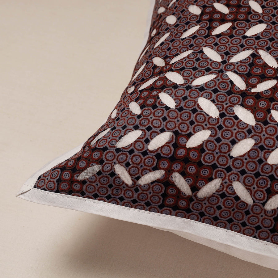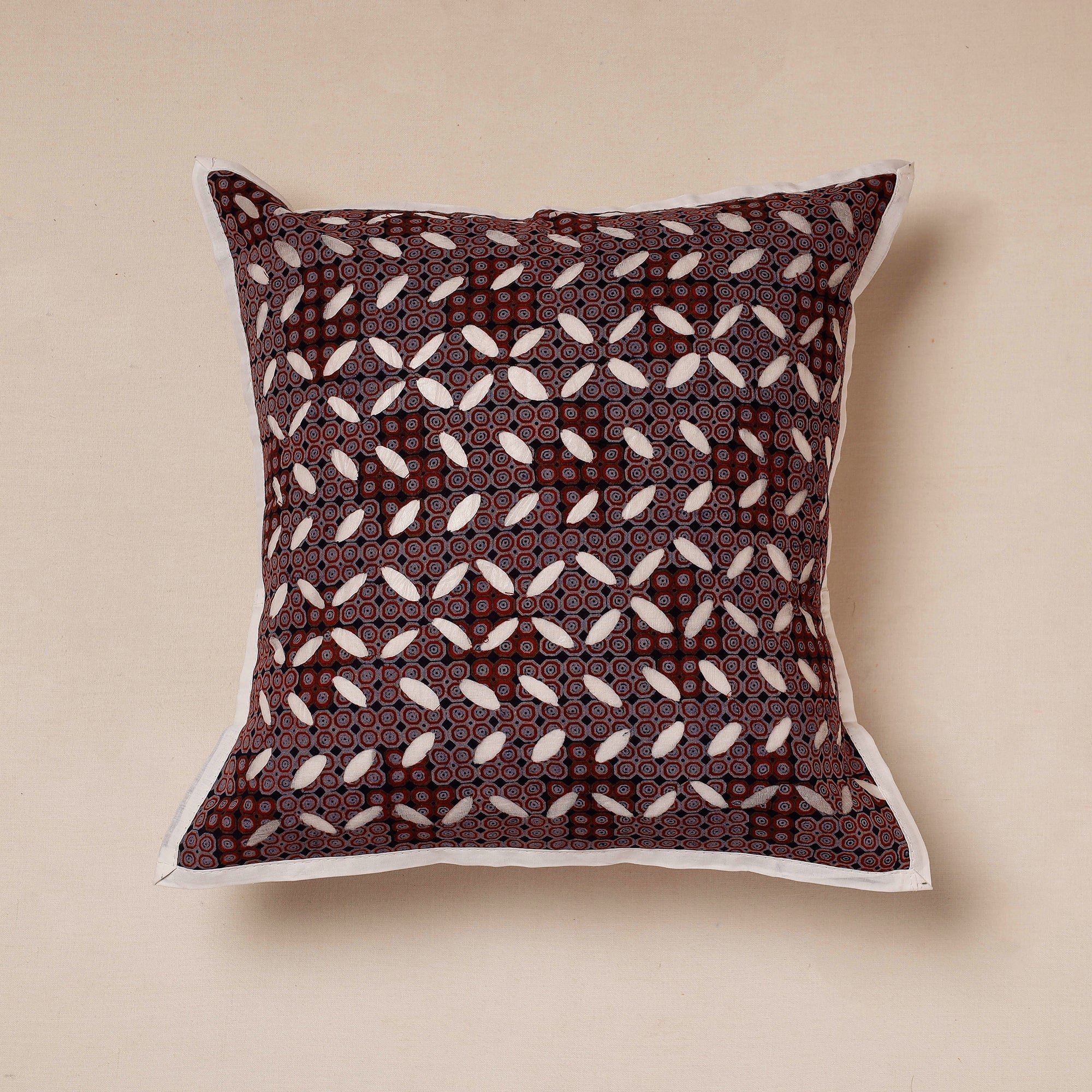 Brown - Cutwork Cotton Applique Cushion Cover (16 x 16 in)