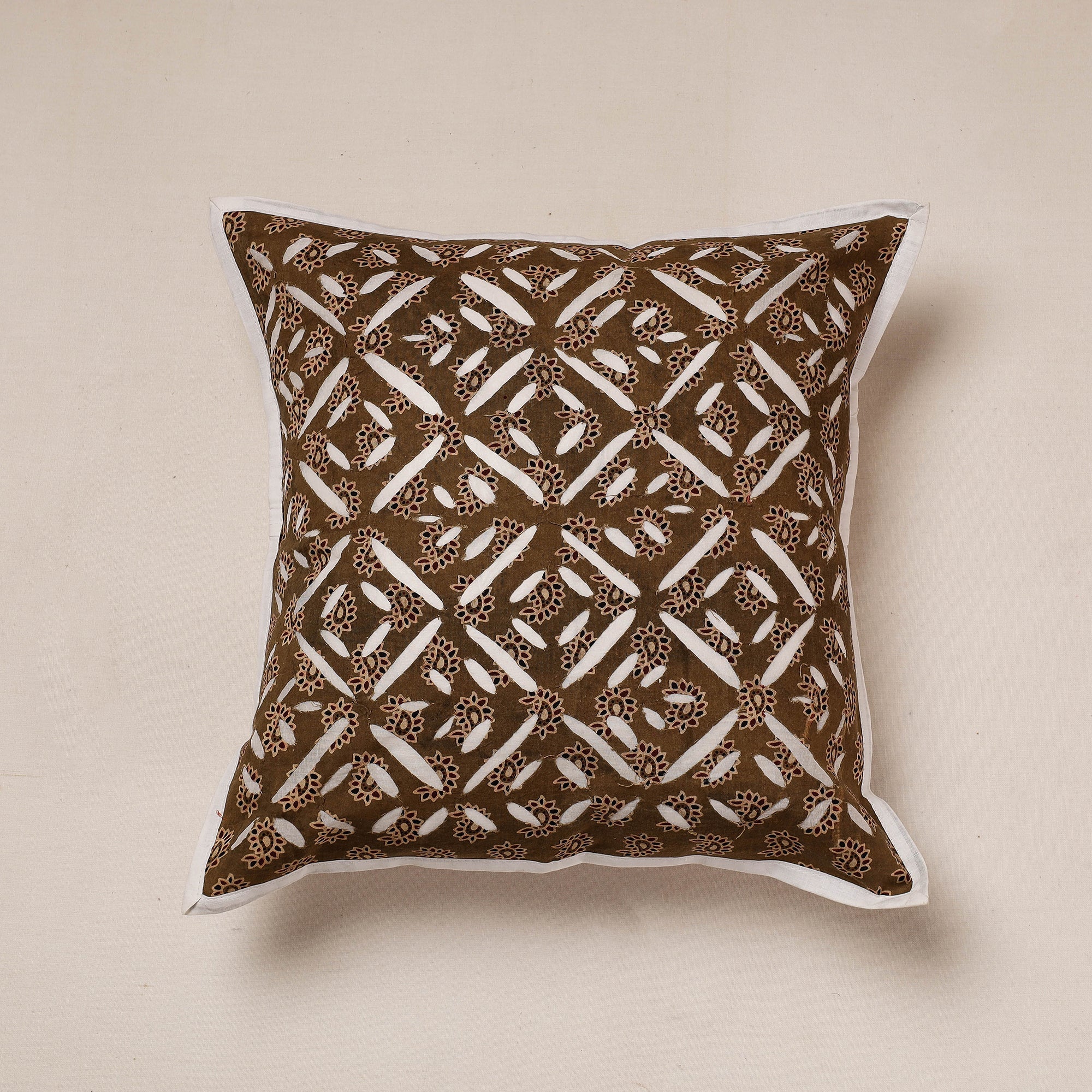 Brown - Cutwork Cotton Applique Cushion Cover (16 x 16 in)