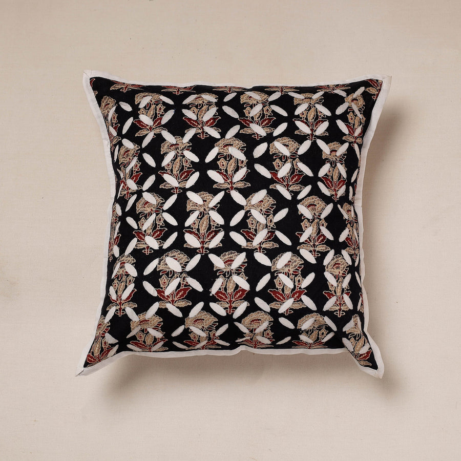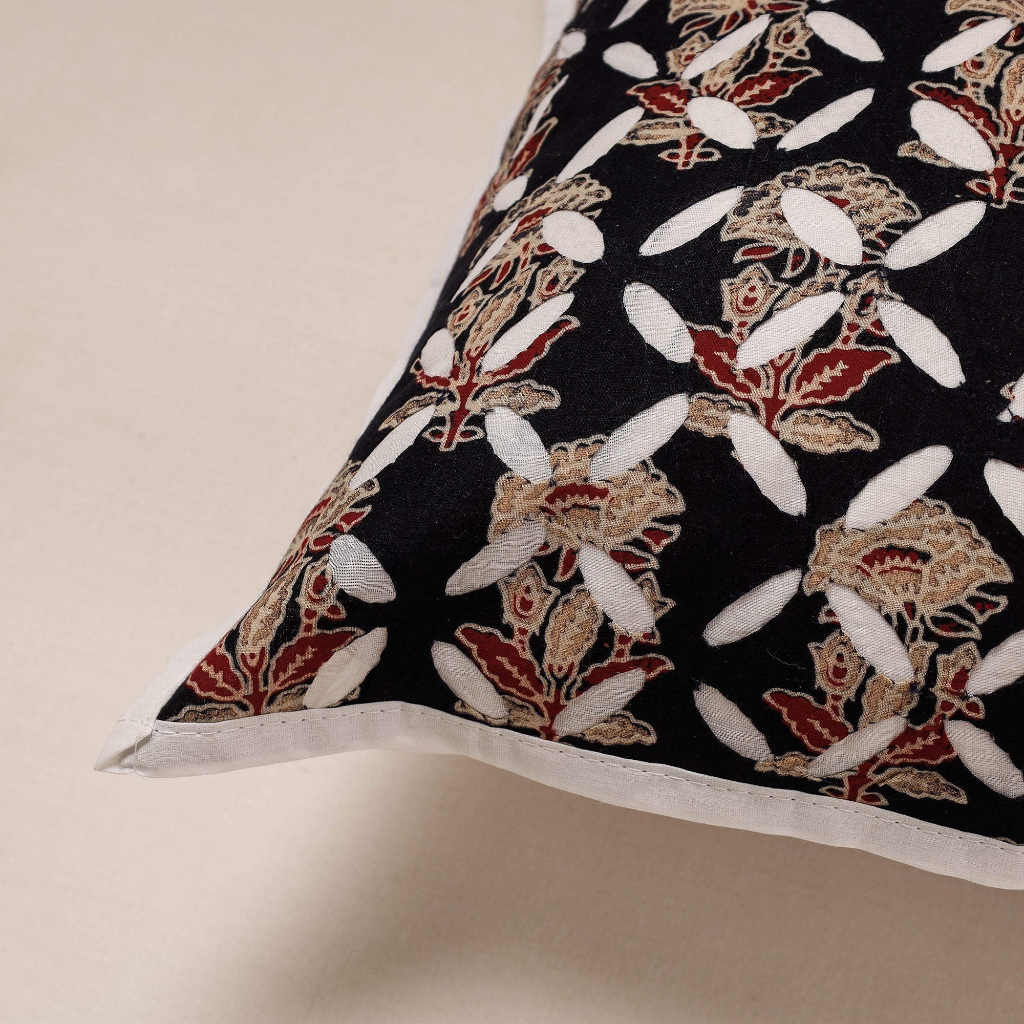 Black - Cutwork Cotton Applique Cushion Cover (16 x 16 in)
