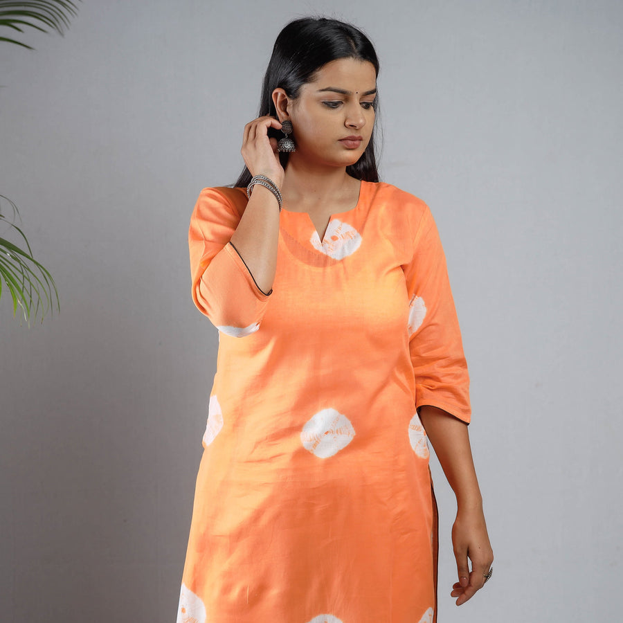 Look and feel beautiful in this uniquely designed shibori tie-dye mul cotton long kurta with one side pocket. This cotton kurta makes you comfortable with ease all day long. This kurta is hand dyed using the shibori tie and dye technique, in which the fabric is tied using clamps or stitches in the required design and the pattern is dyed.