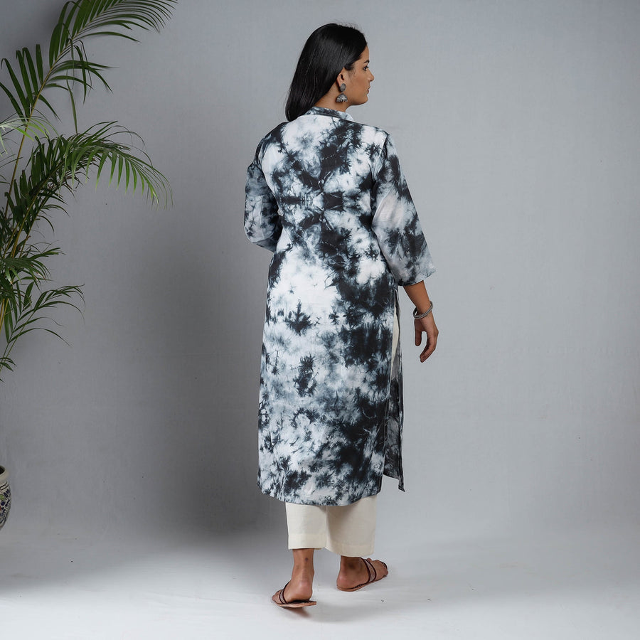Look and feel beautiful in this uniquely designed shibori tie-dye mul cotton long kurta with one side pocket. This cotton kurta makes you comfortable with ease all day long. This kurta is hand dyed using the shibori tie and dye technique, in which the fabric is tied using clamps or stitches in the required design and the pattern is dyed.