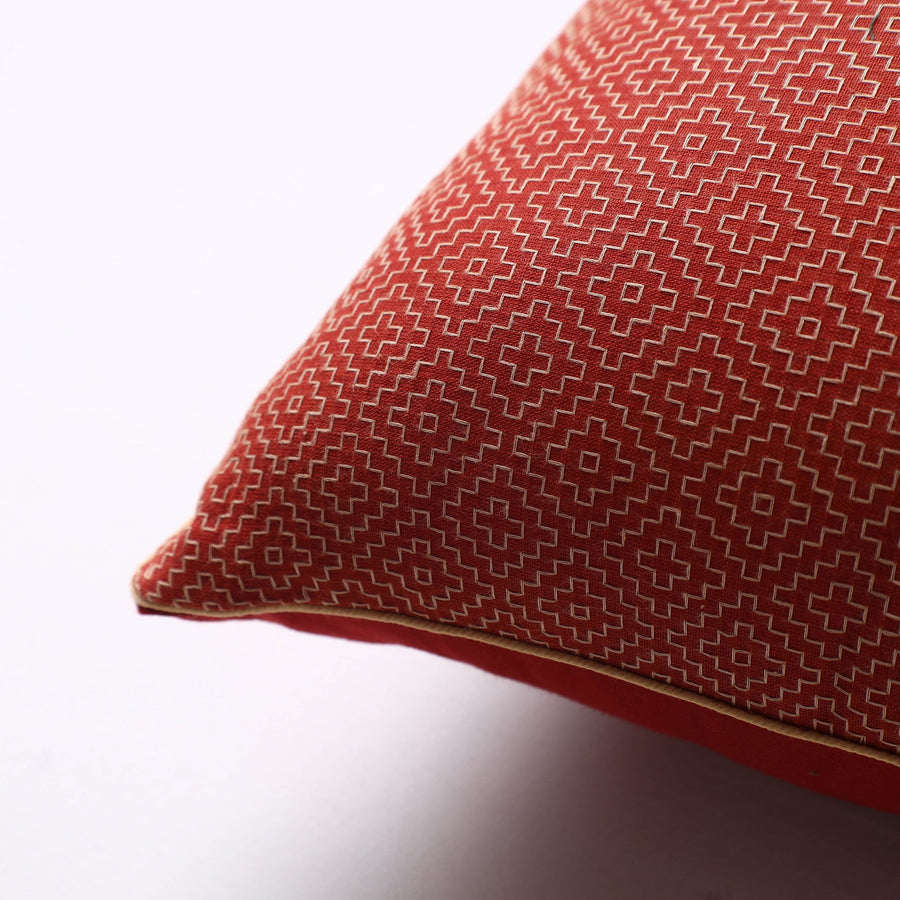 Enhance your home decor with our fine quality red jacquard cushion cover. Made from pure cotton fabrics textured with handmade textiles of India, this cushion cover adds a touch of elegance and craftsmanship to your living space. This piece carries tiny knots, thread pulls, or uneven lines — not flaws, but fingerprints. Every irregularity is a whisper from the hands that made it. It’s what happens when tradition weaves through time, not machines. If you’re looking for perfection, this isn’t it. But if you’re looking for soul — you’ve found it.