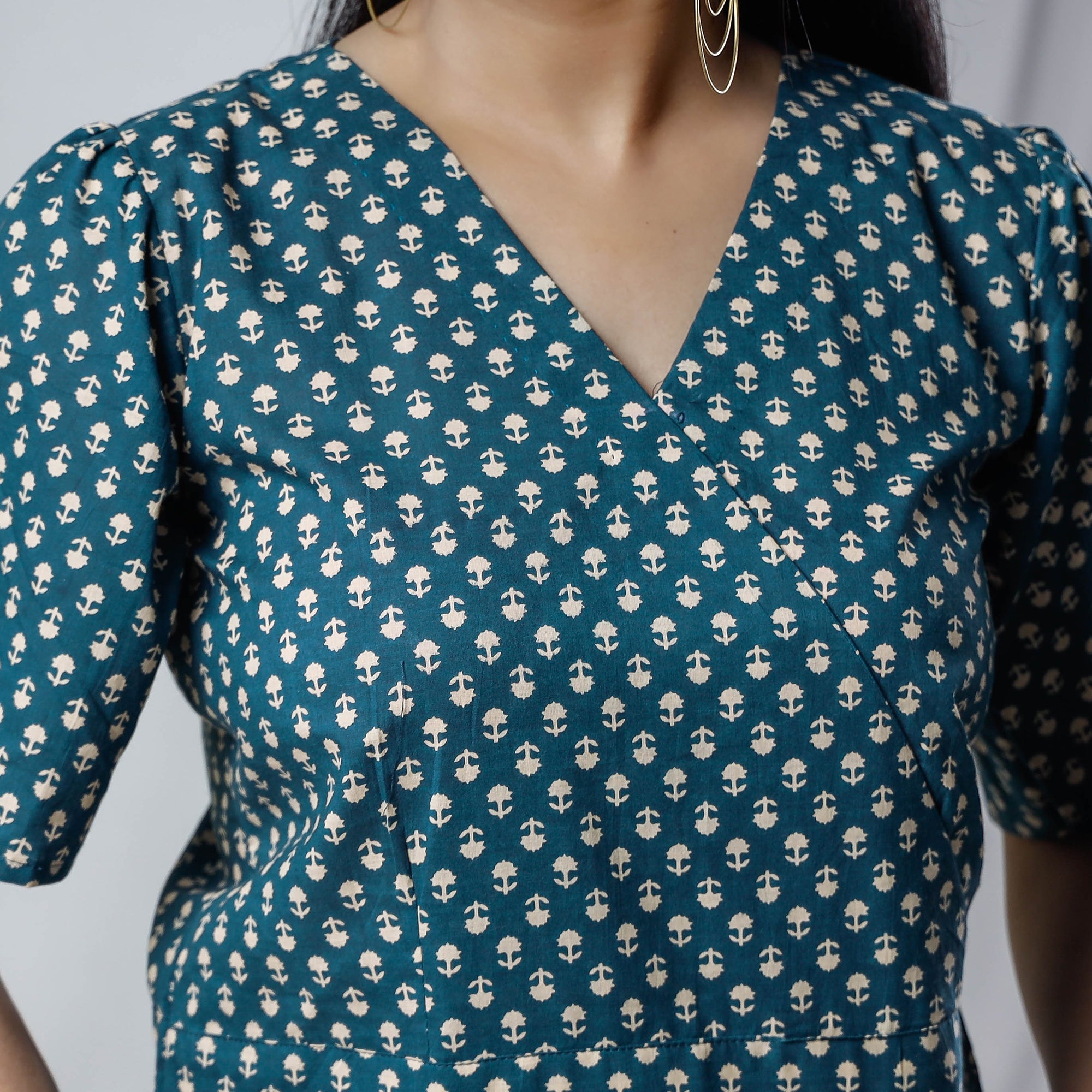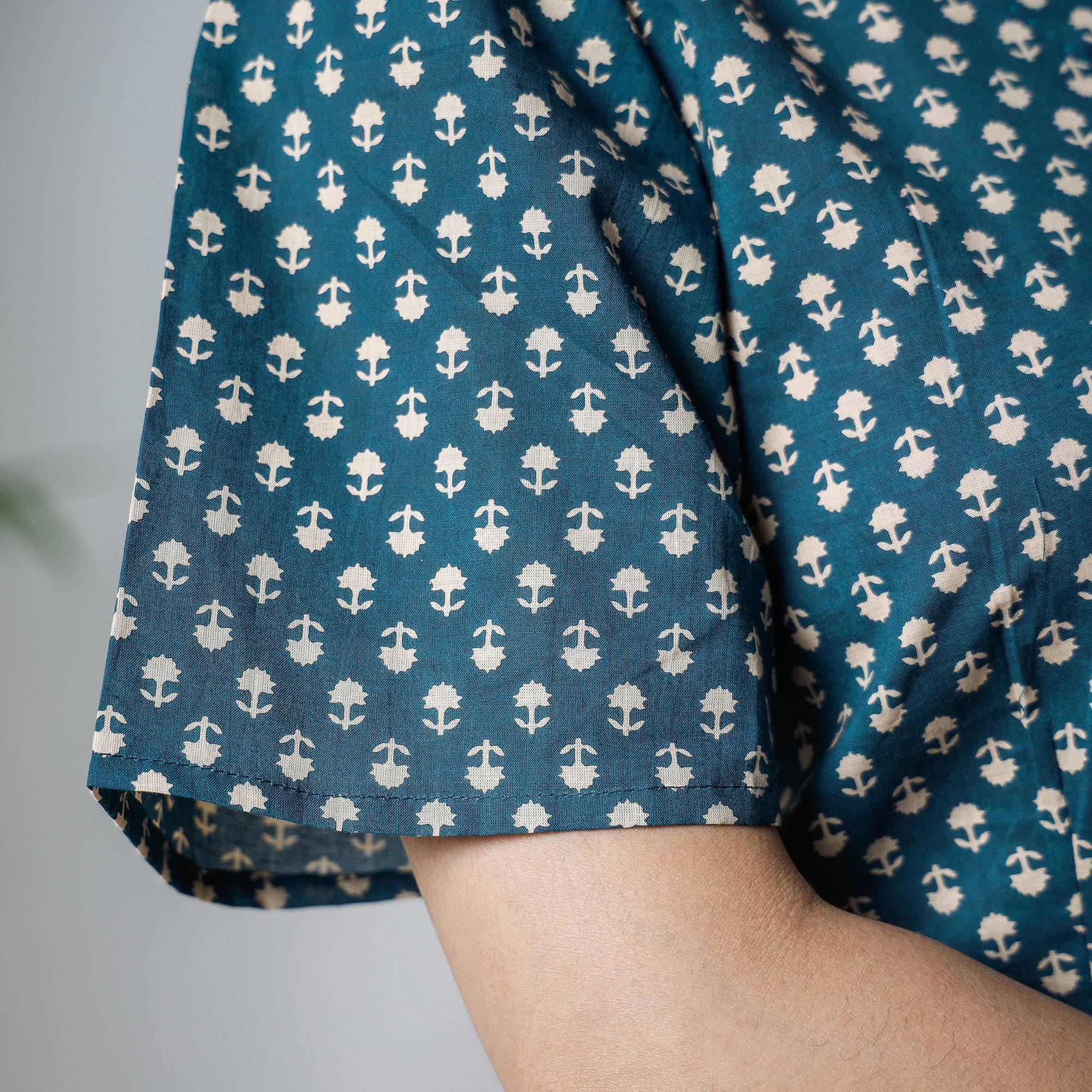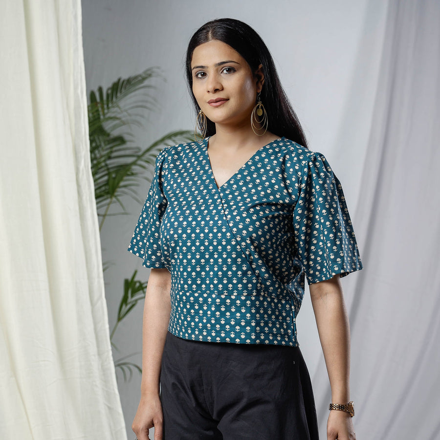 Look and feel beautiful in this uniquely designed sanganeri hand block prints crop top featuring half sleeves. Crafted from soft and breathable cotton fabric, this crop top is comfortable for all-day wear. Its unique design makes it perfect for daily outings and special occasions alike.
