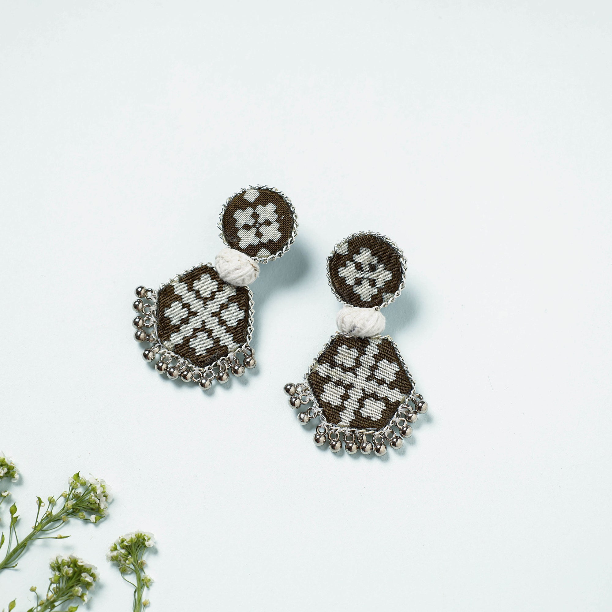Green handcrafted fabart earrings made by the master artist Sufiyan Khatri, who practises in the Kutch region of Gujarat, These exclusive earrings will complement the majority of your dresses and give you a fashionable look.