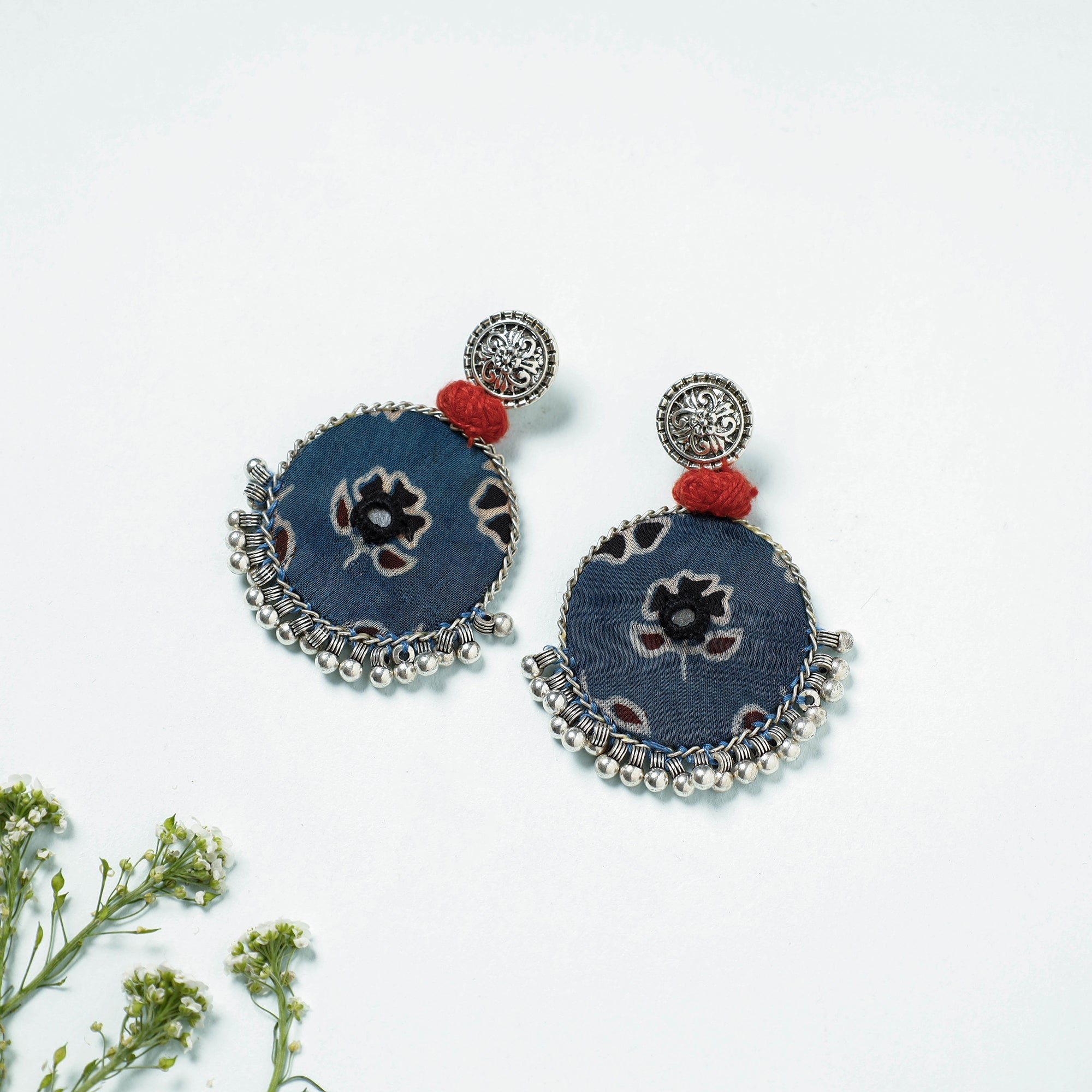 Blue handcrafted fabart earrings made by the master artist Sufiyan Khatri, who practises in the Kutch region of Gujarat, These exclusive earrings will complement the majority of your dresses and give you a fashionable look.