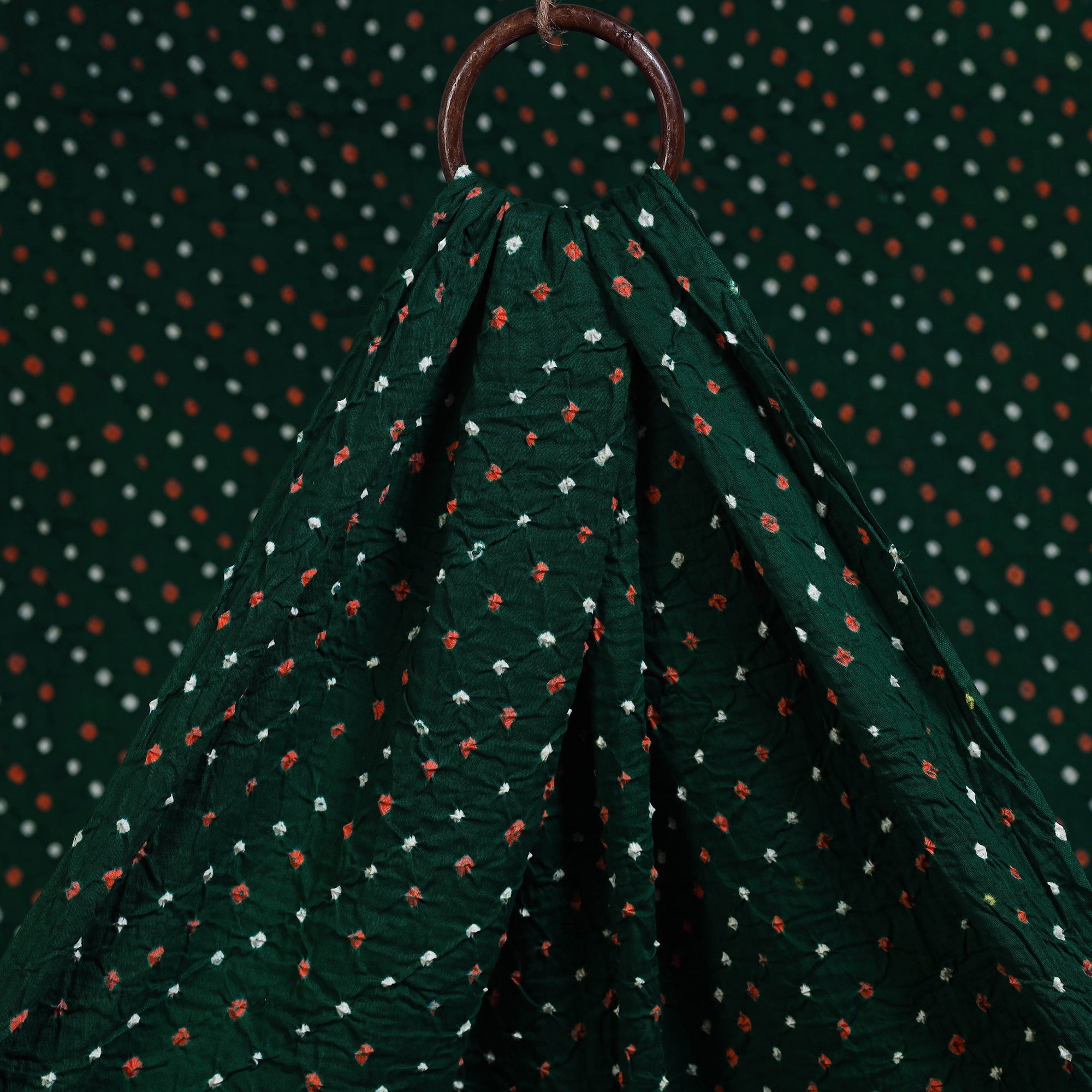 Embrace the charm of Kutch with this stunning green bandhani mul cotton fabric. Carefully hand-tied and dyed using age-old bandhej techniques, every piece features detailed patterns that echo a rich cultural legacy. Soft, breathable, and versatile, it’s perfect for creating modern outfits with a traditional touch.