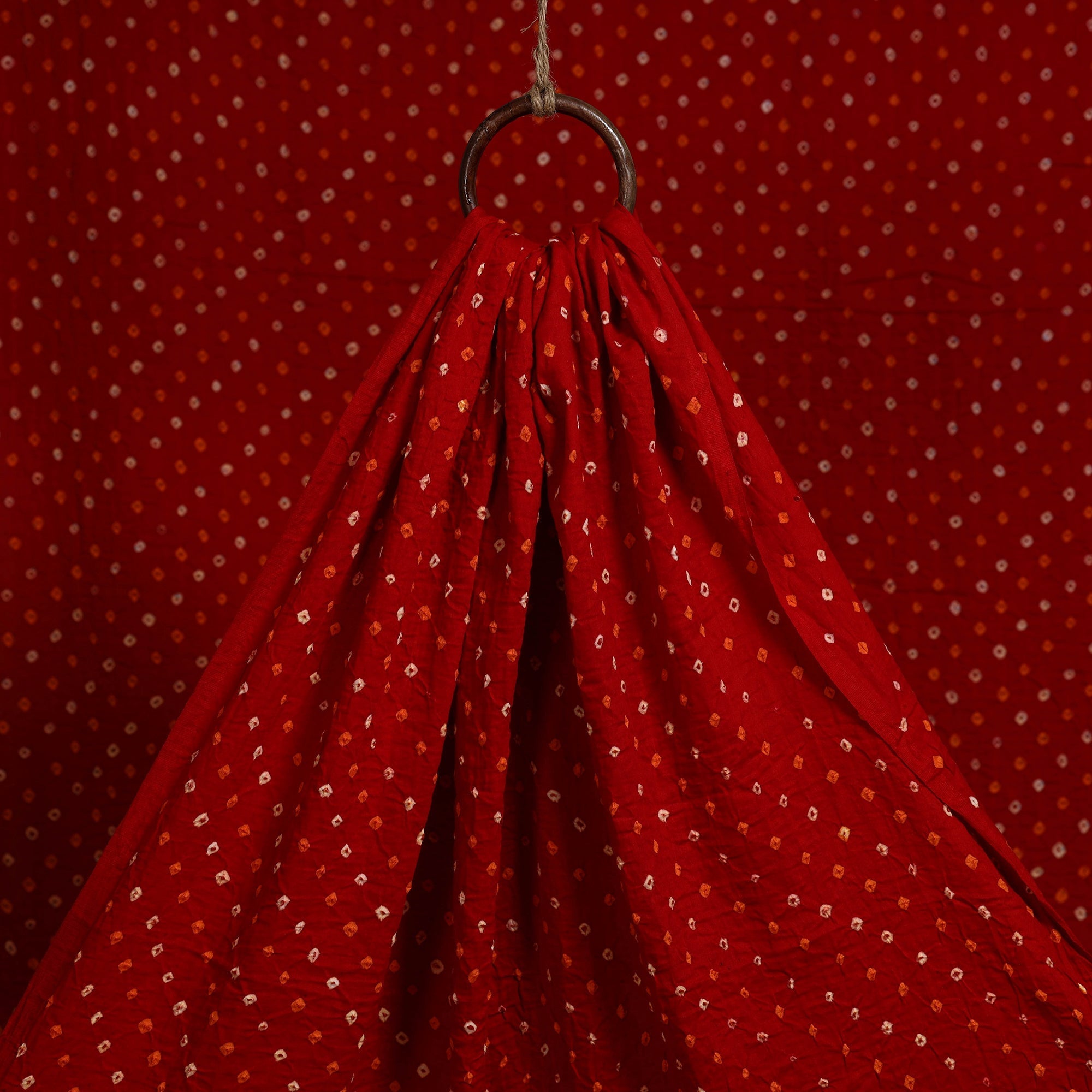 Elevate your wardrobe with this exquisite Kutch Bandhani (Bandhej) tie-dye satin cotton fabric. Featuring a majestic bandhani pattern, this fabric is hand-tied and dyed using the traditional technique practiced by the artisans of Kutch. The art of Bandhani is a highly skilled process that involves tightly tying fabric with threads at several points to create intricate patterns. This fine quality fabric is a testament to the craftsmanship and rich cultural heritage of Kutch.