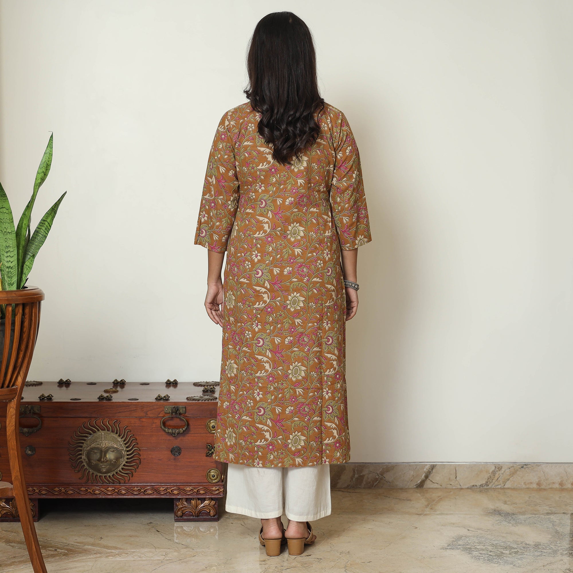 Look and feel beautiful in this uniquely designed cotton printed long kalamkari kurta with a side pocket. Kalamkari is the earliest and most complex technique of printing. This kurta is perfect for your daily outing and for a special occasion.