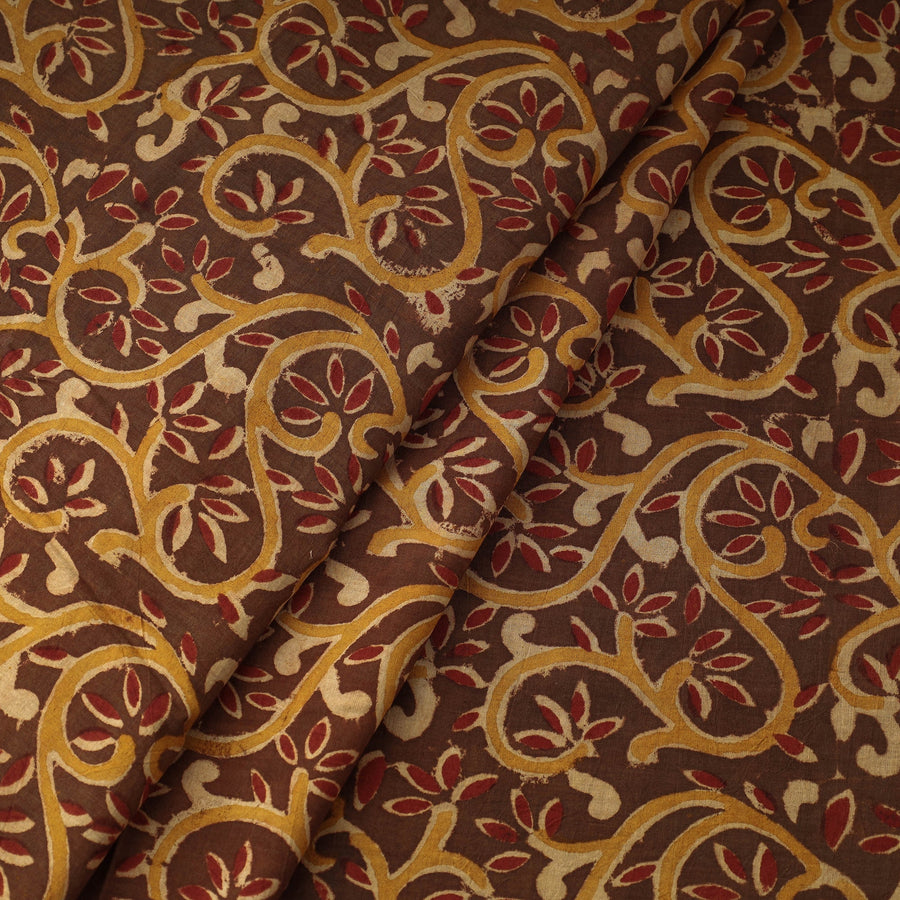 Indulge in the rich artistry of Kalamkari with this fine quality cotton fabric. Hand block printed using natural dyes, this fabric showcases an array of traditional motifs inspired by Kalamkari painting. The intricate detailing and complex techniques used by artisans from Andhra Pradesh make this fabric a masterpiece. Perfect for creating stunning apparel, home decor, or accessories with a touch of traditional elegance. Elevate your style with this exquisite Kalamkari block printed cotton fabric.