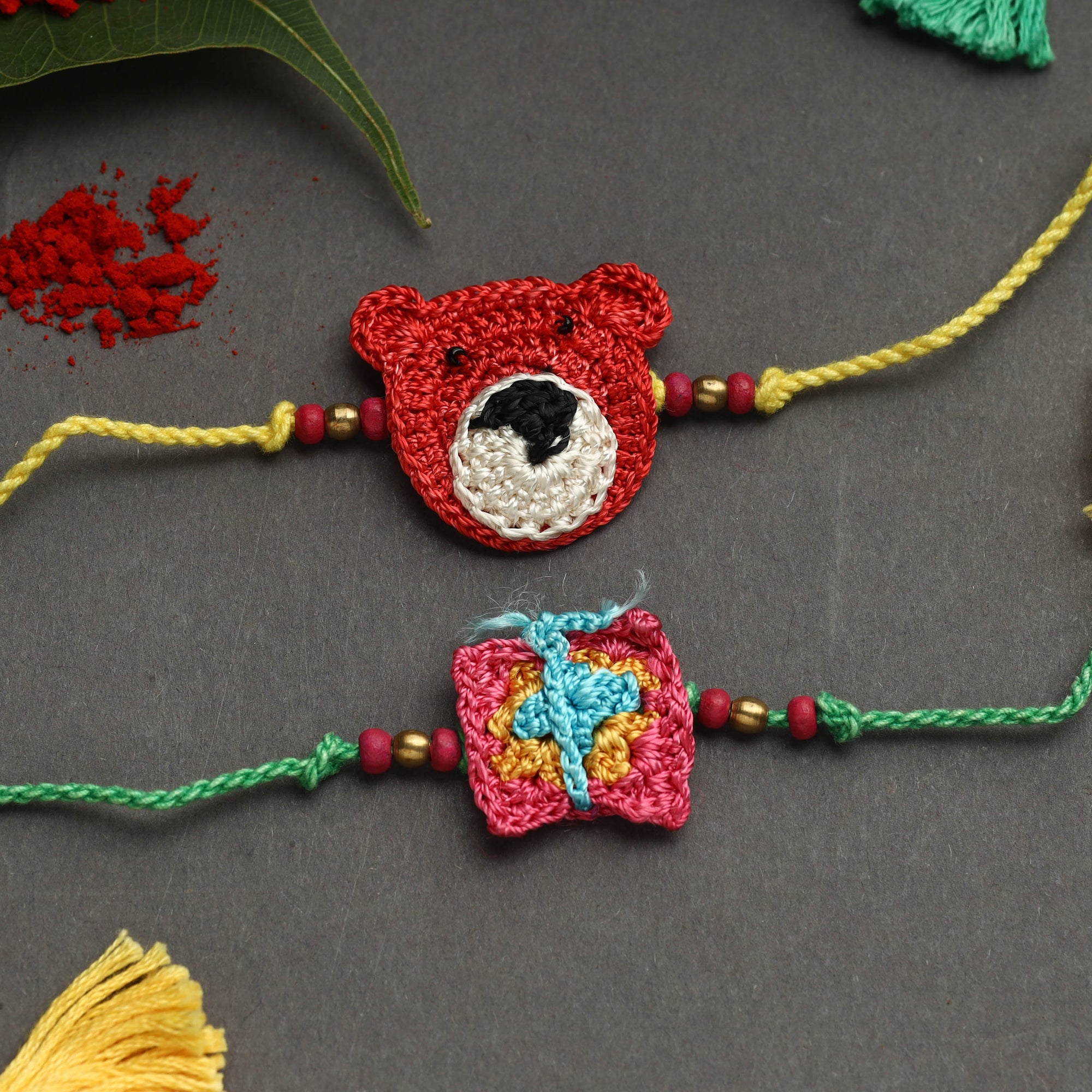 Colourful handmade crochet work rakhi made from cotton & viscose silk threads handcrafted for the very special khatta meetha bond between brother and sister. This rakhi is handcrafted by women artisans of Gaya, our thread Rakhi’s are made with a lot of love and care for you and the environment. Rakhi Recycling Tips : Make your own brooch with the pin, reuse it as a curtain tie or a funky choker necklace, add to your bag as a lucky charm, stitch it with your skirt as a tassel. There are a number of creative ways to repurpose this gorgeous keepsake.