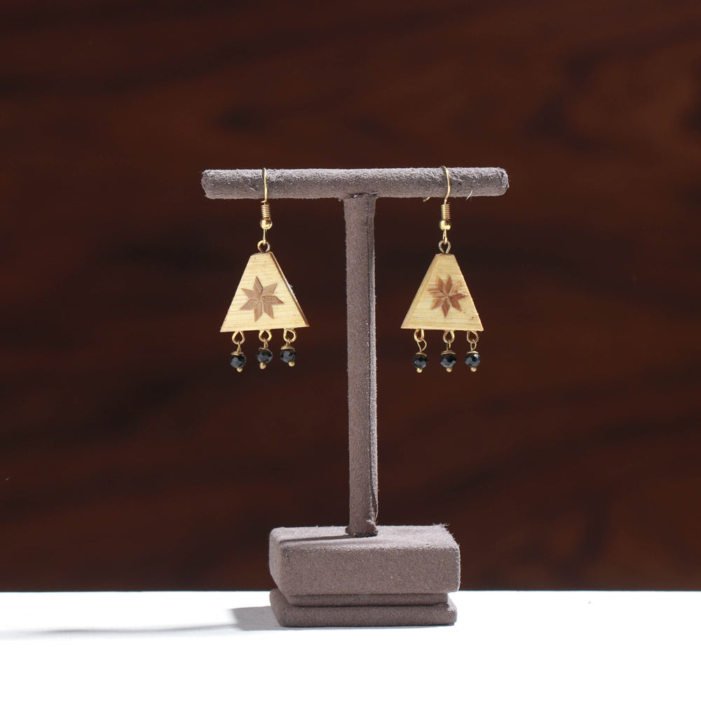 Beige handmade bamboo craft earrings by Baansuli. These earrings are made from locally sourced variety of manvel bamboo, crafted by tribal artisans of Dangs, Gujarat.