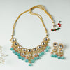 Yellow golden plated brass kundan necklace set with monalisa drop shape stones. Made of high quality brass metal with rustic shine effect & AD Setting Kundan work.