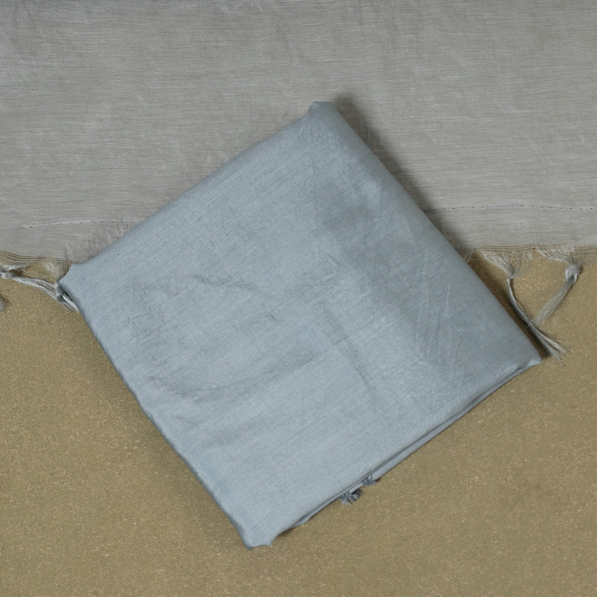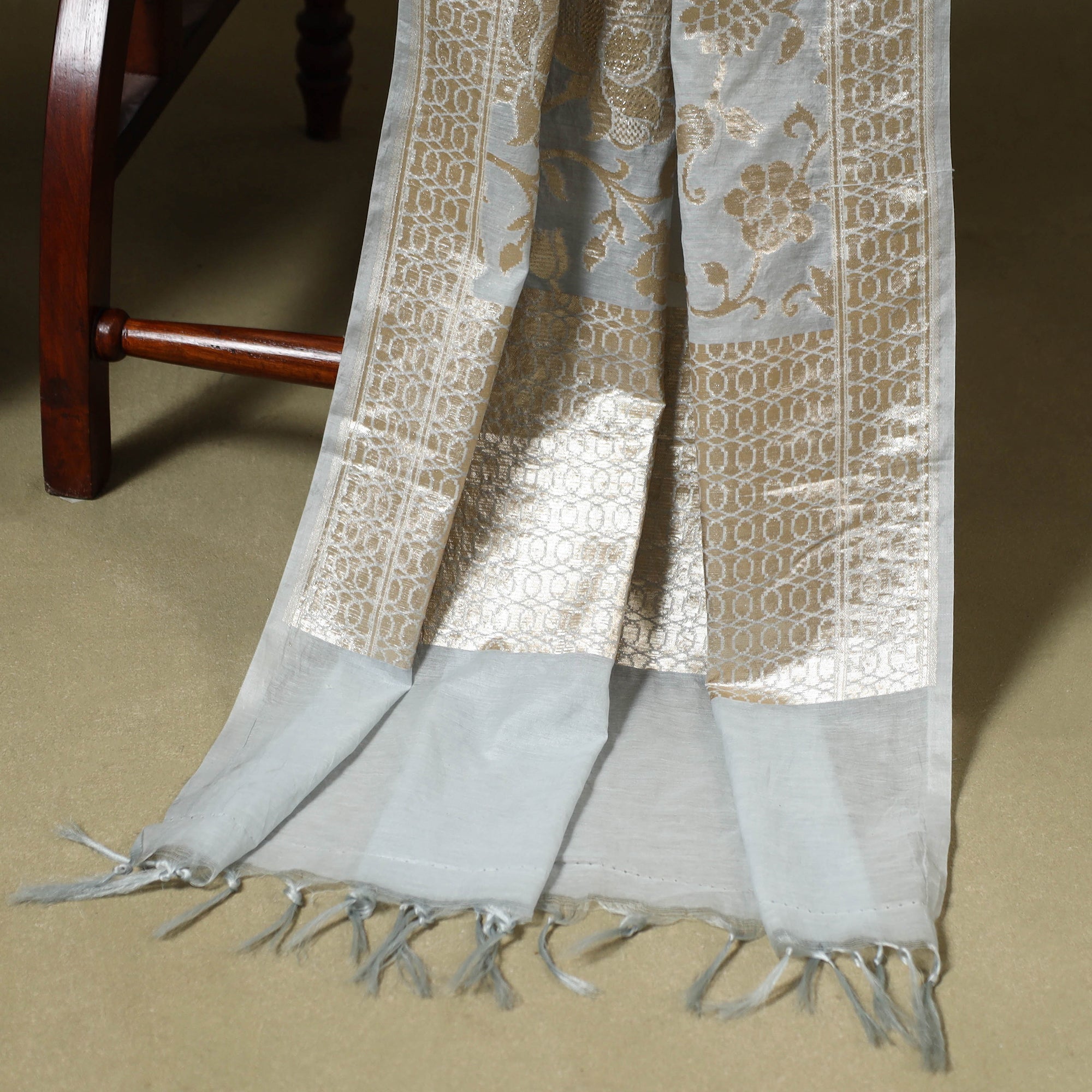 Grey - Brocade Handloom Pure Silk Banarasi Stole with Tassels 14