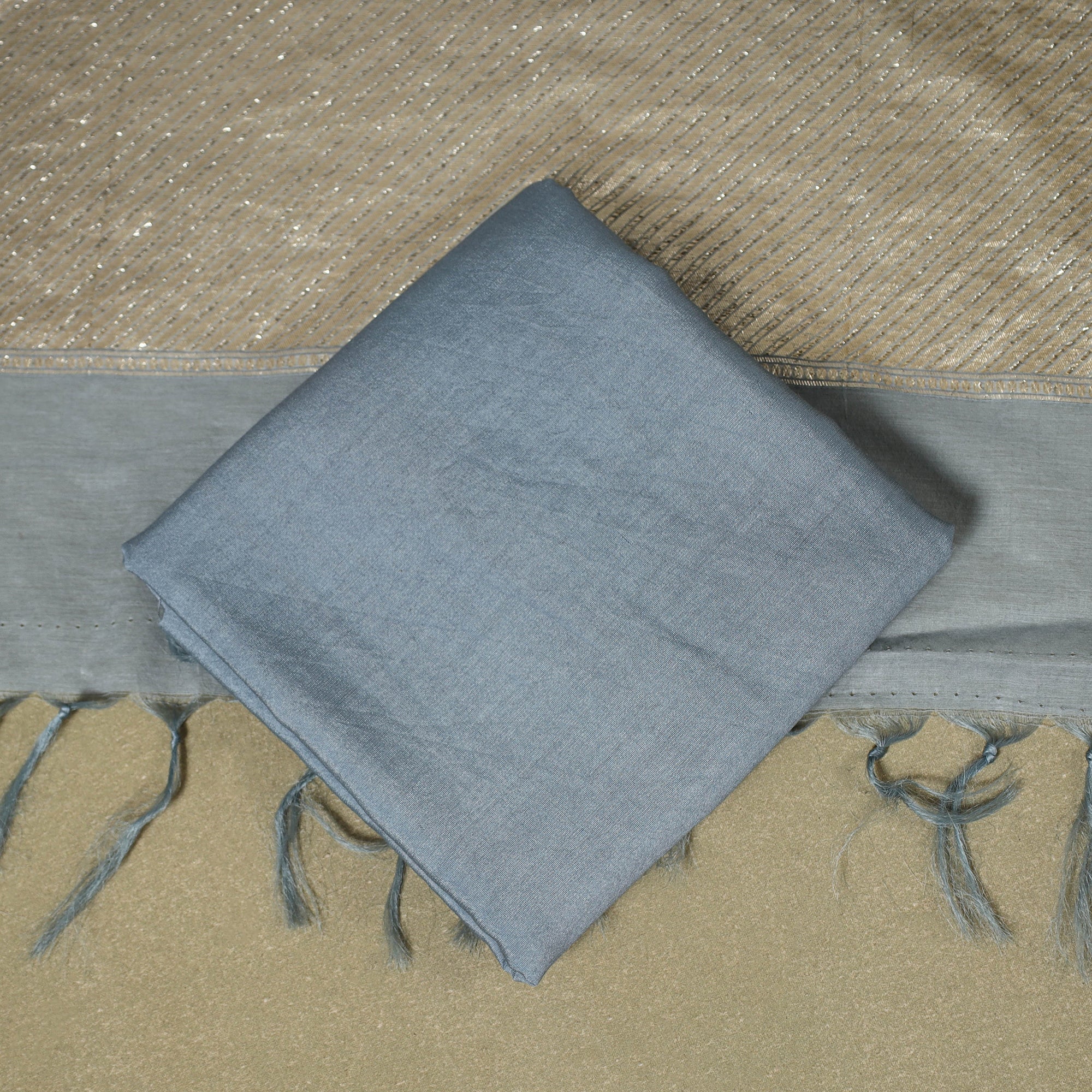 Grey - Brocade Handloom Pure Silk Banarasi Stole with Tassels 14