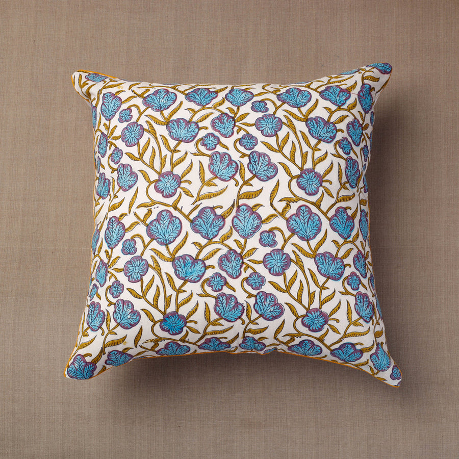 Fine quality blue sanganeri block printed cotton cushion cover.