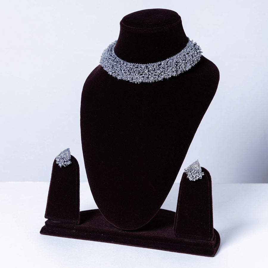 Necklace : Width - 3 cm. Choker Length : 24 cm. Earrings : Length - 2.5 cm. Width - 1.5 cm. (Adjustable thread knot lock).