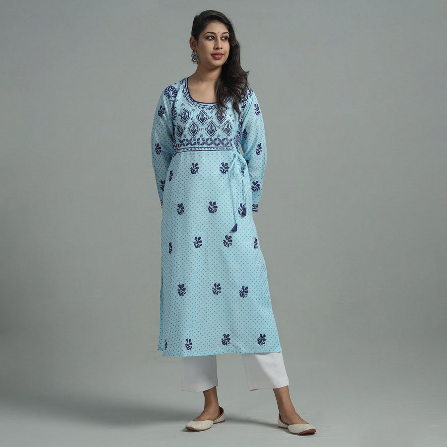 Intricate and artfully done lucknowi chikankari hand embroidered cotton kurta. Chikankari is a traditional textile decorative from Lucknow. It is very delicate and intricate hand embroidery work where thread is embroidered on cool, pastel shades of light cotton garments