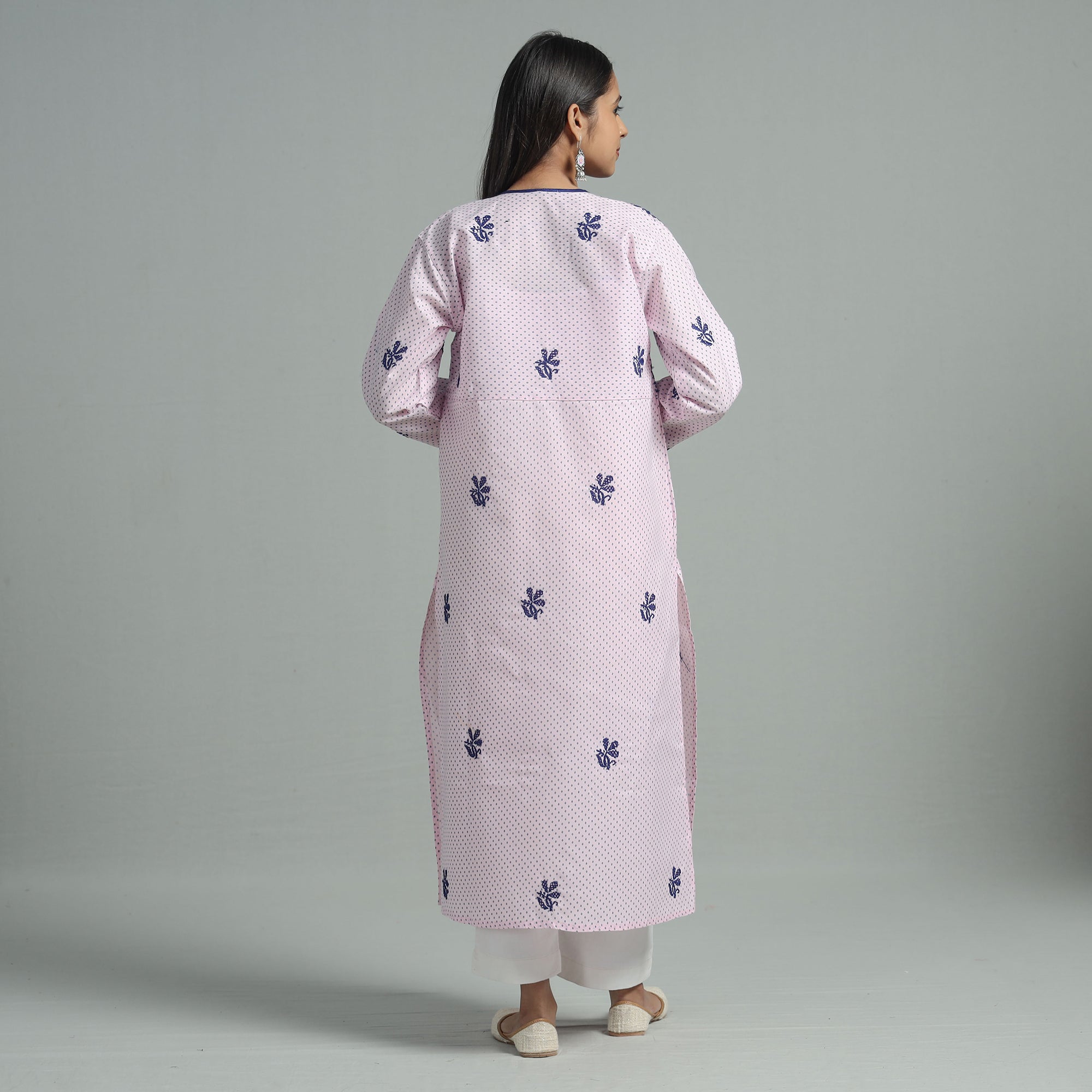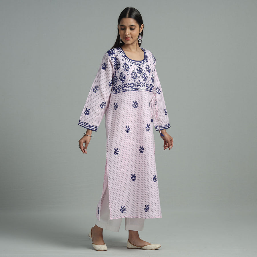 Intricate and artfully done lucknowi chikankari hand embroidered cotton kurta. Chikankari is a traditional textile decorative from Lucknow. It is very delicate and intricate hand embroidery work where thread is embroidered on cool, pastel shades of light cotton garments