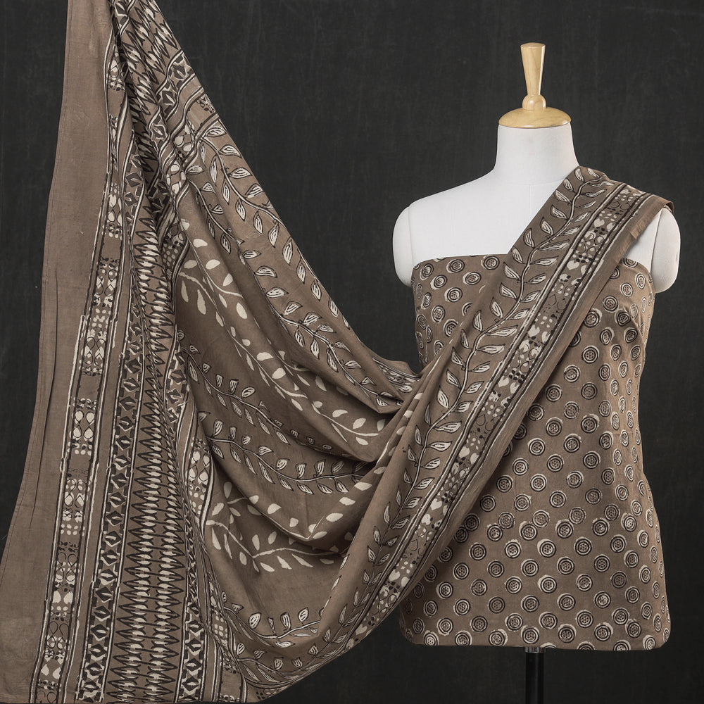 Experience the charm of traditional artistry with our pipad print dress material. This exquisite 3-piece cotton suit set features authentic block prints crafted by master artisan Chhipa Azhar from Pipar, Rajasthan.