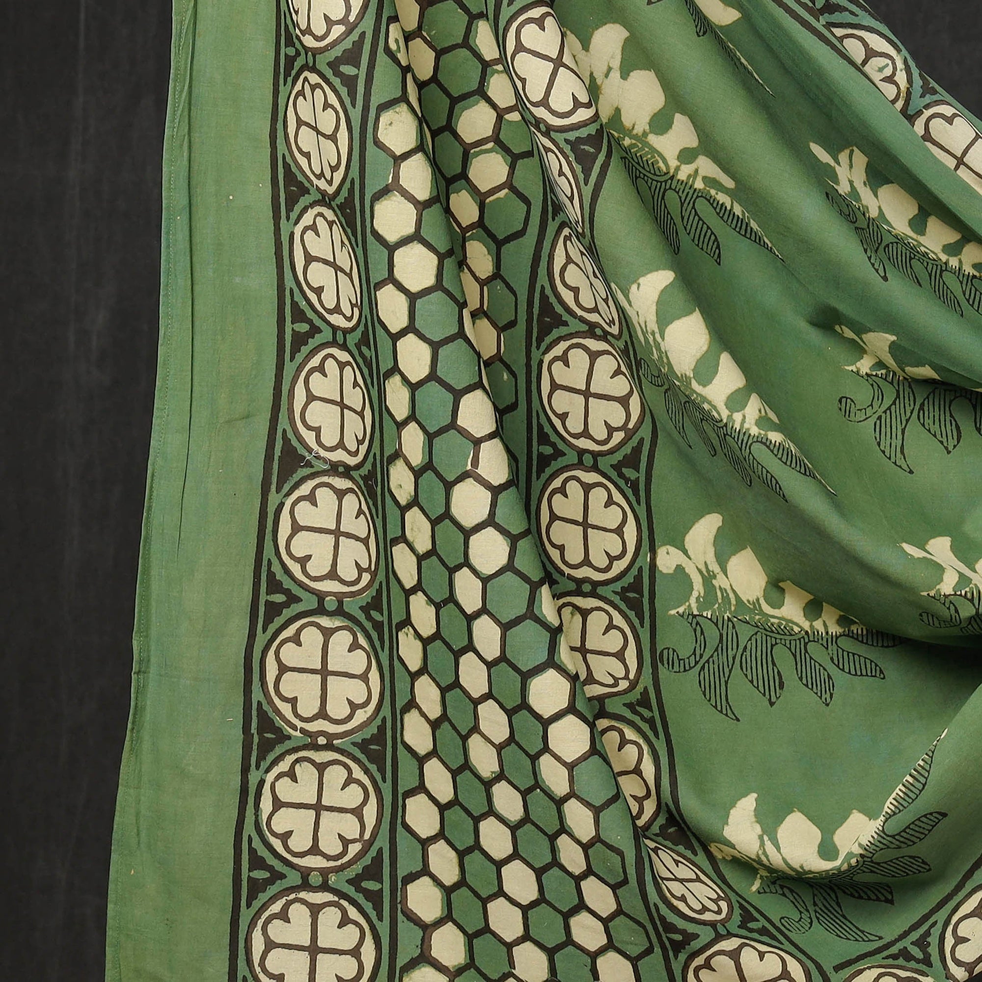 Green - 3pc Cotton Block Printed Pipad Unstitched Dress Material Set
