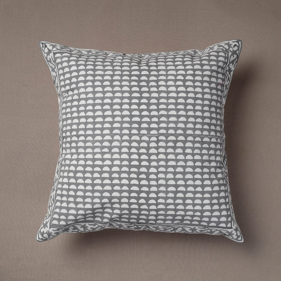 Fine quality grey sanganeri hand block printed cotton cushion cover. Sanganeri is a hand-block printing technique originating from Sanganer, a village in the southern part of Jaipur, Rajasthan. Bleed free VAT dyes used.