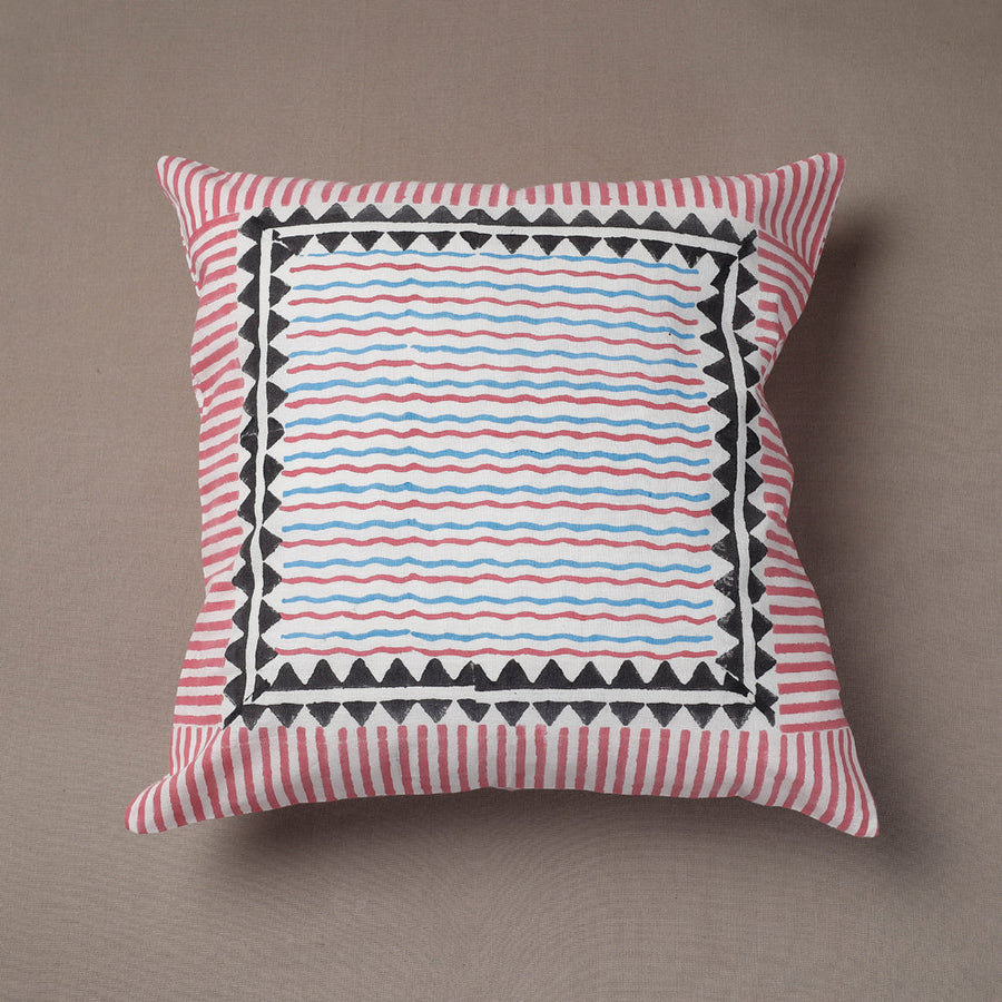 Fine quality pink sanganeri hand block printed cotton cushion cover. Sanganeri is a hand-block printing technique originating from Sanganer, a village in the southern part of Jaipur, Rajasthan. Bleed free VAT dyes used.