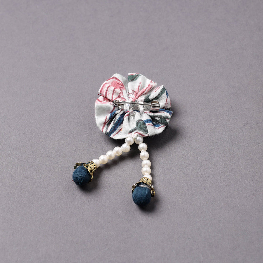 Material Handmade beadwork flower brooch/saree pin made from mixed fabric with katran artworks on saree pin using beads, shells, and cotton threads.