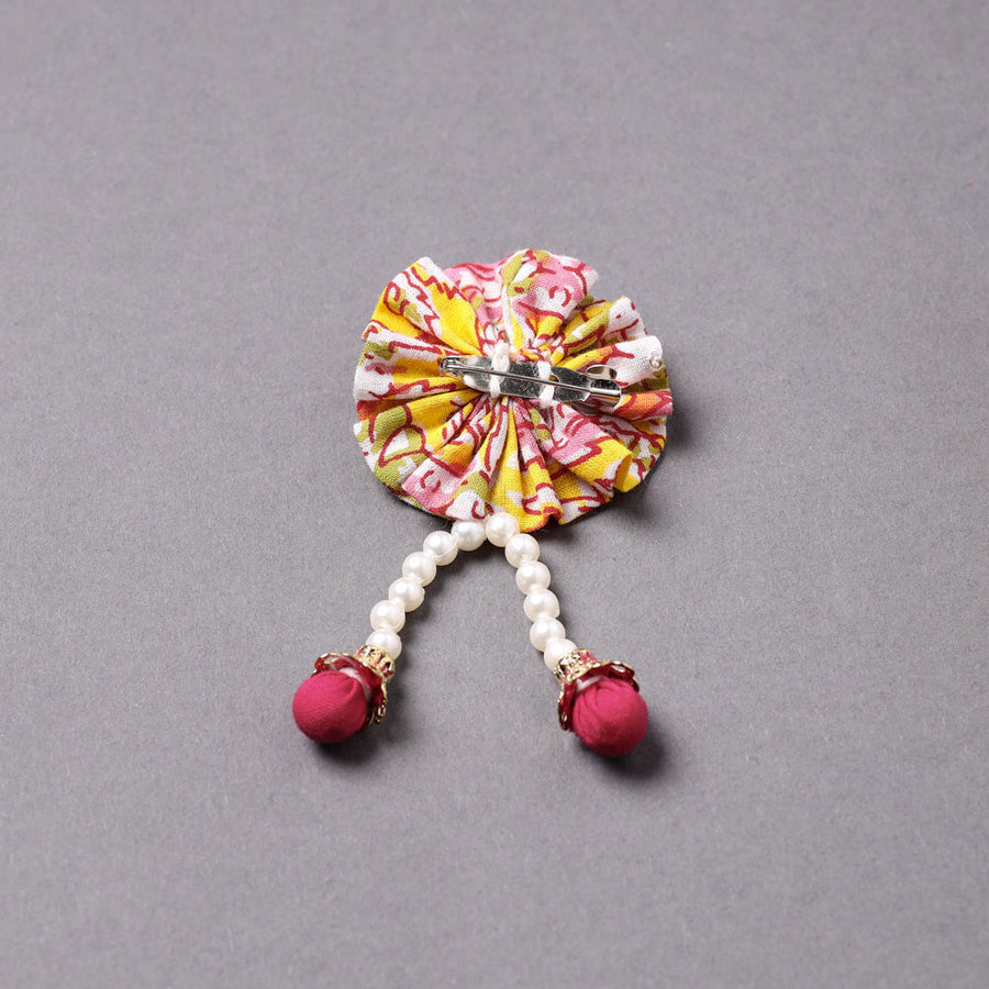 Material Handmade beadwork flower brooch/saree pin made from mixed fabric with katran artworks on saree pin using beads, shells, and cotton threads.