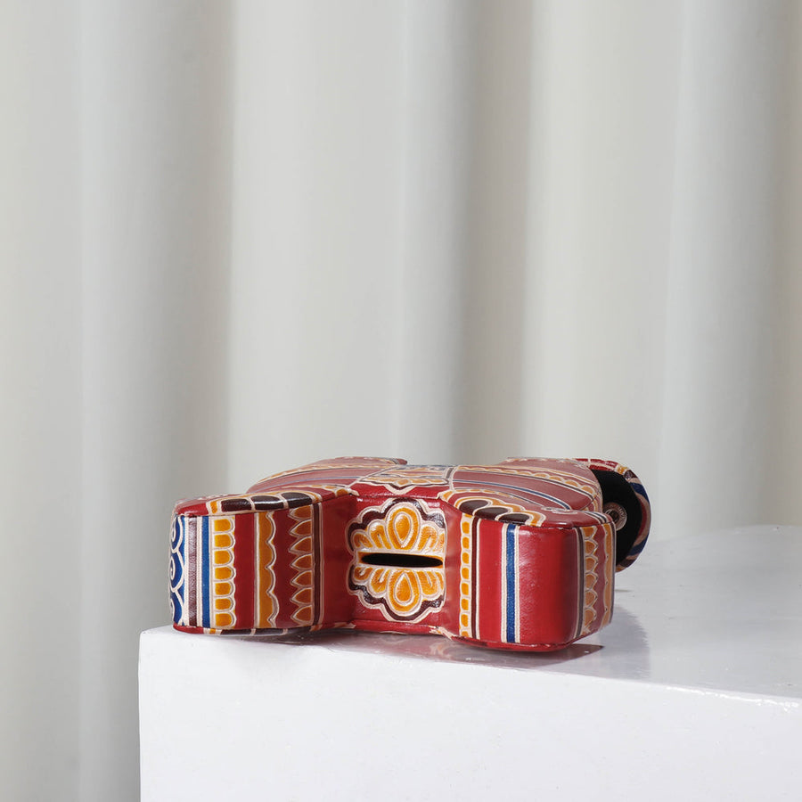 Handcrafted double horse vegetable tanned coin holder/money bank, made from cruelty free shanti leather. Has a hole with snap-button lock to remove the stored coins. Great gift for children and also as a decorative.