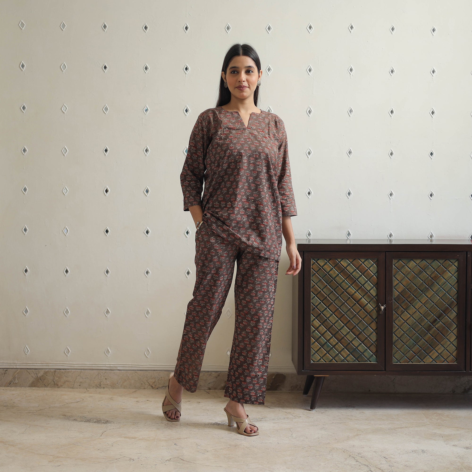 Brown - Block Printed Cotton Ajrakh Co-ord Set 20