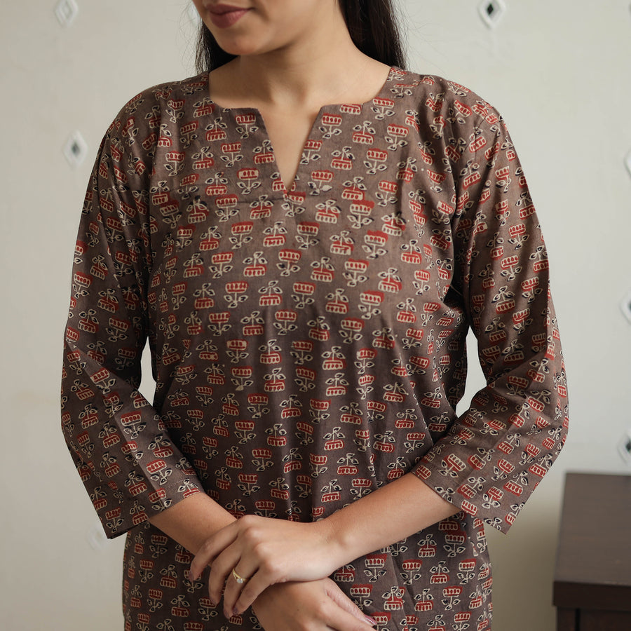 Material Embrace sustainable style with this brown block printed cotton ajrakh co-ord set, featuring traditional block printing from Kutch. Made with natural-dyed cotton, the set includes an elasticated pant and a stylish top for all-day comfort. Perfect for casual outings or special occasions, it combines timeless craftsmanship with modern elegance.