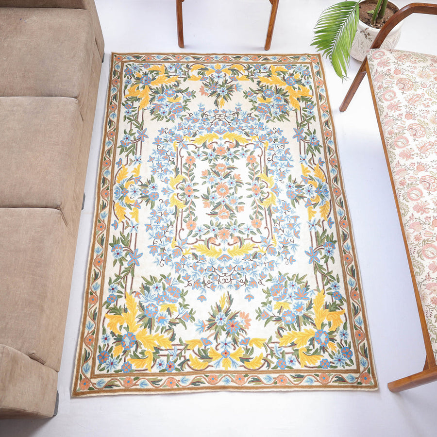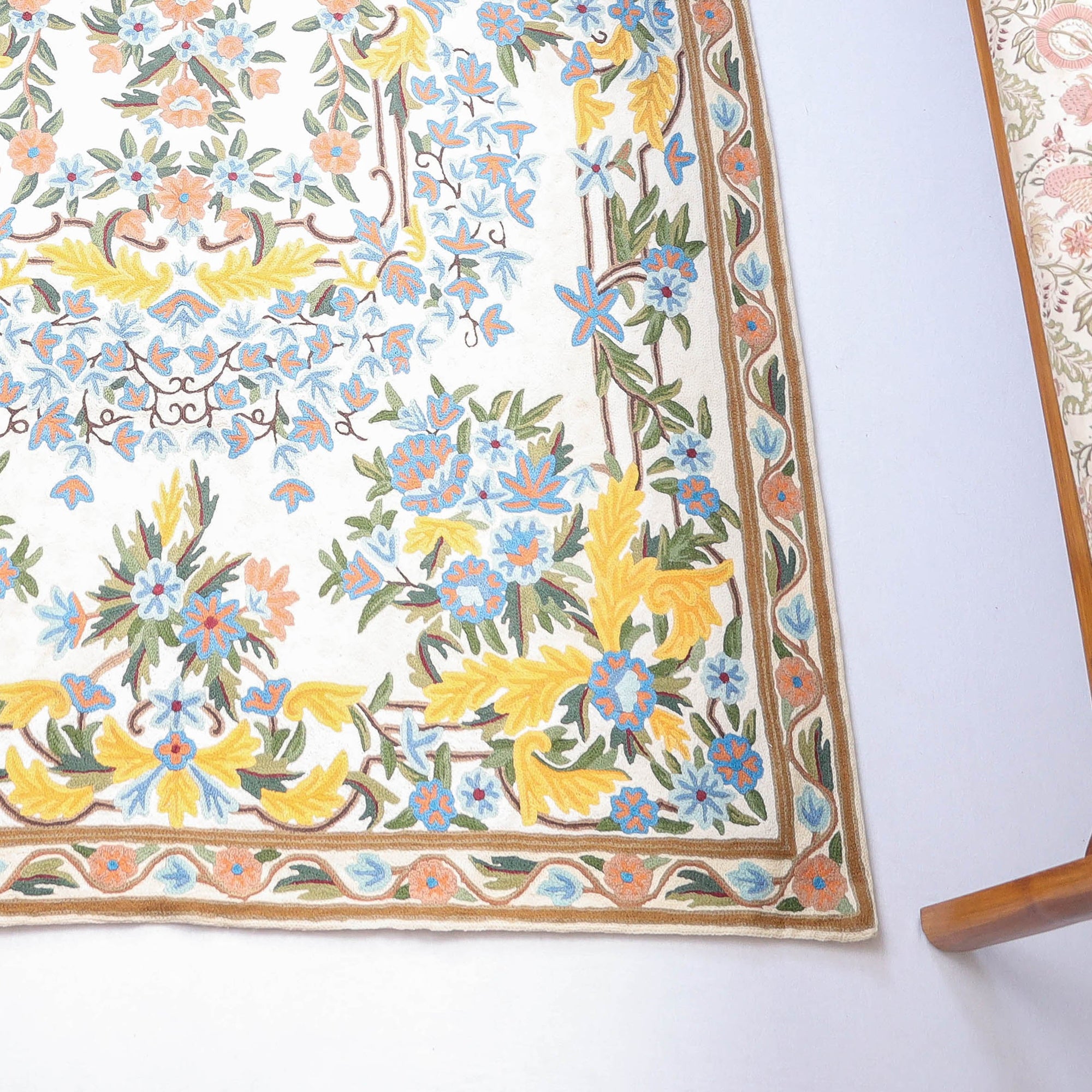 Crewel is derived from the type of yarn used, "Krua" (meaning wool). Crewel embroidery is a beautiful, traditional and ancient embroidery of Kashmir origin where weavers use wool to create designs on the background of the linen twill fabric.