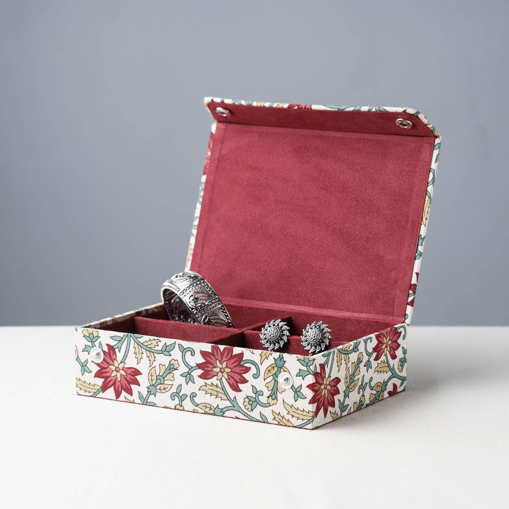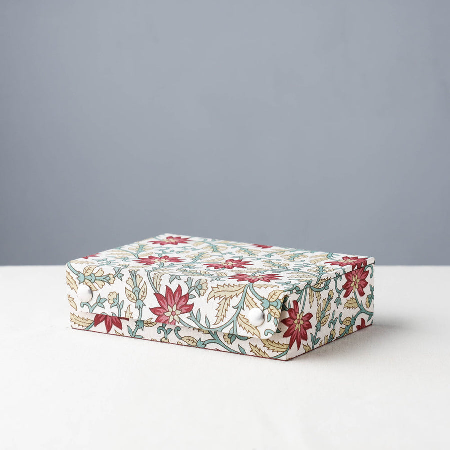 This Hamper include : 1 Ajrakh Hand Block Printed Cotton Kaftan with Tie-Up Waist (Medium), 1 Brass Base Oxidized Earrings, 1 Sukriti Handmade Printed Fabric Jewelry Box (Small)