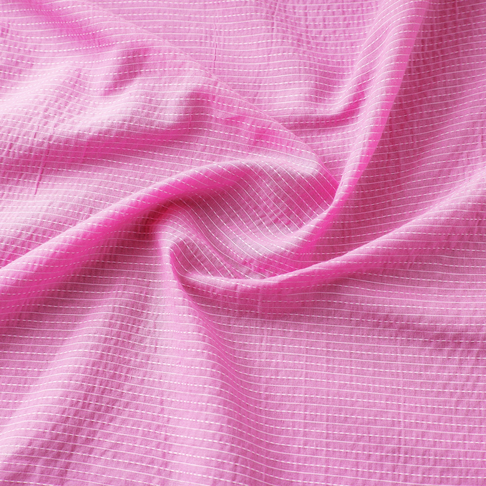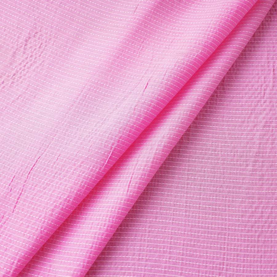 This pink prewashed running stitch plain cotton fabric is the perfect choice for your sewing and crafting projects. Made from high-quality cotton and prewashed for extra softness, it is versatile, and suitable for both apparel and home decor projects. Sourced from Jaipur, this fabric offers durability and comfort.