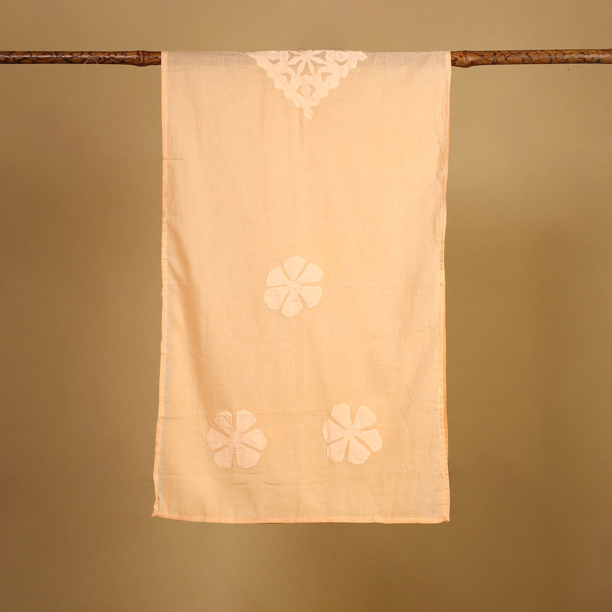 Fine quality hand-stitched traditional orange applique cut work soft cotton stole. Its unique style appliqué work does magic in light and shade with beautiful stories and patterns. This famous applique cut work is done by the artisans of Barmer, Rajasthan.