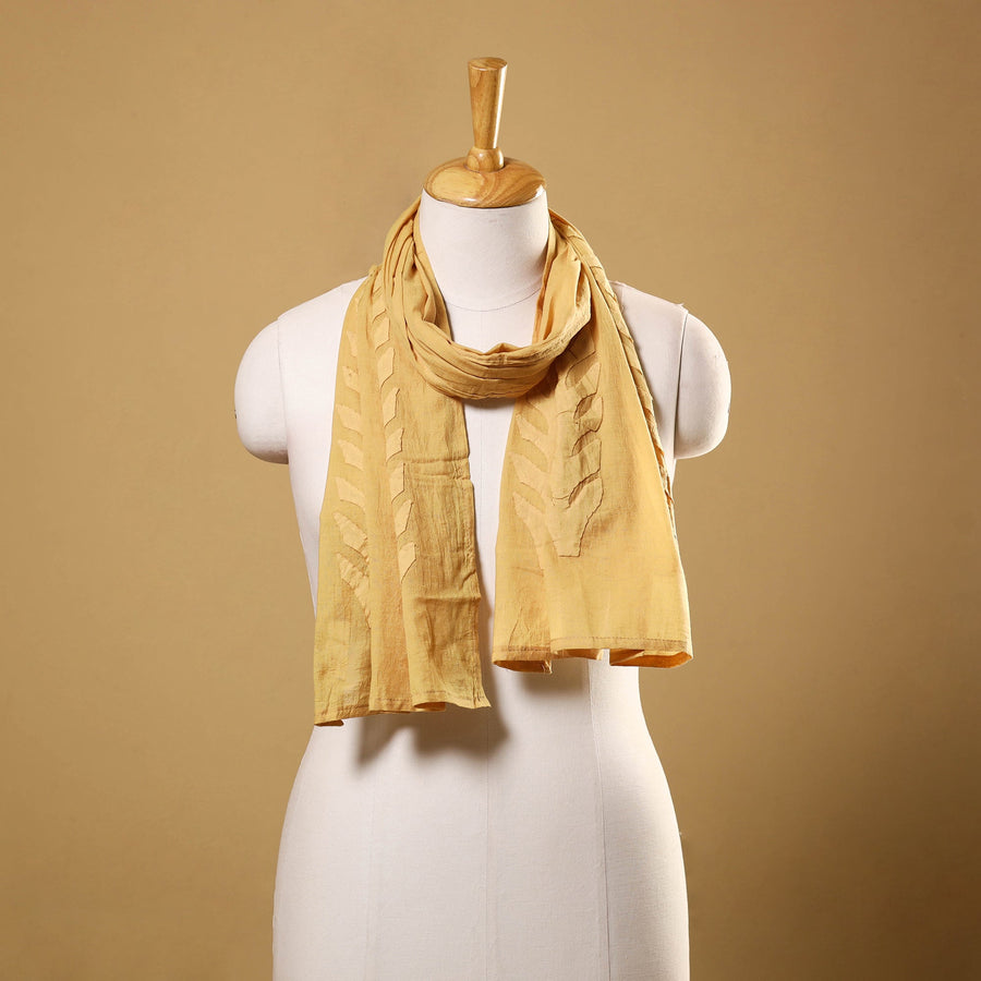 Fine quality hand-stitched traditional yellow applique cut work soft cotton stole. Its unique style appliqué work does magic in light and shade with beautiful stories and patterns. This famous applique cut work is done by the artisans of Barmer, Rajasthan.