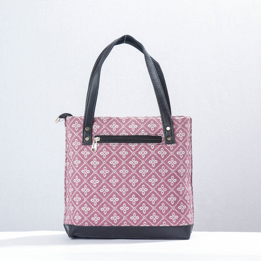 Pink handcrafted shoulder bag made from printed cotton fabric from marudhara, Barmer. It has one zipper pocket outside & one zipper pocket inside. Ample space to keep most of your essentials.